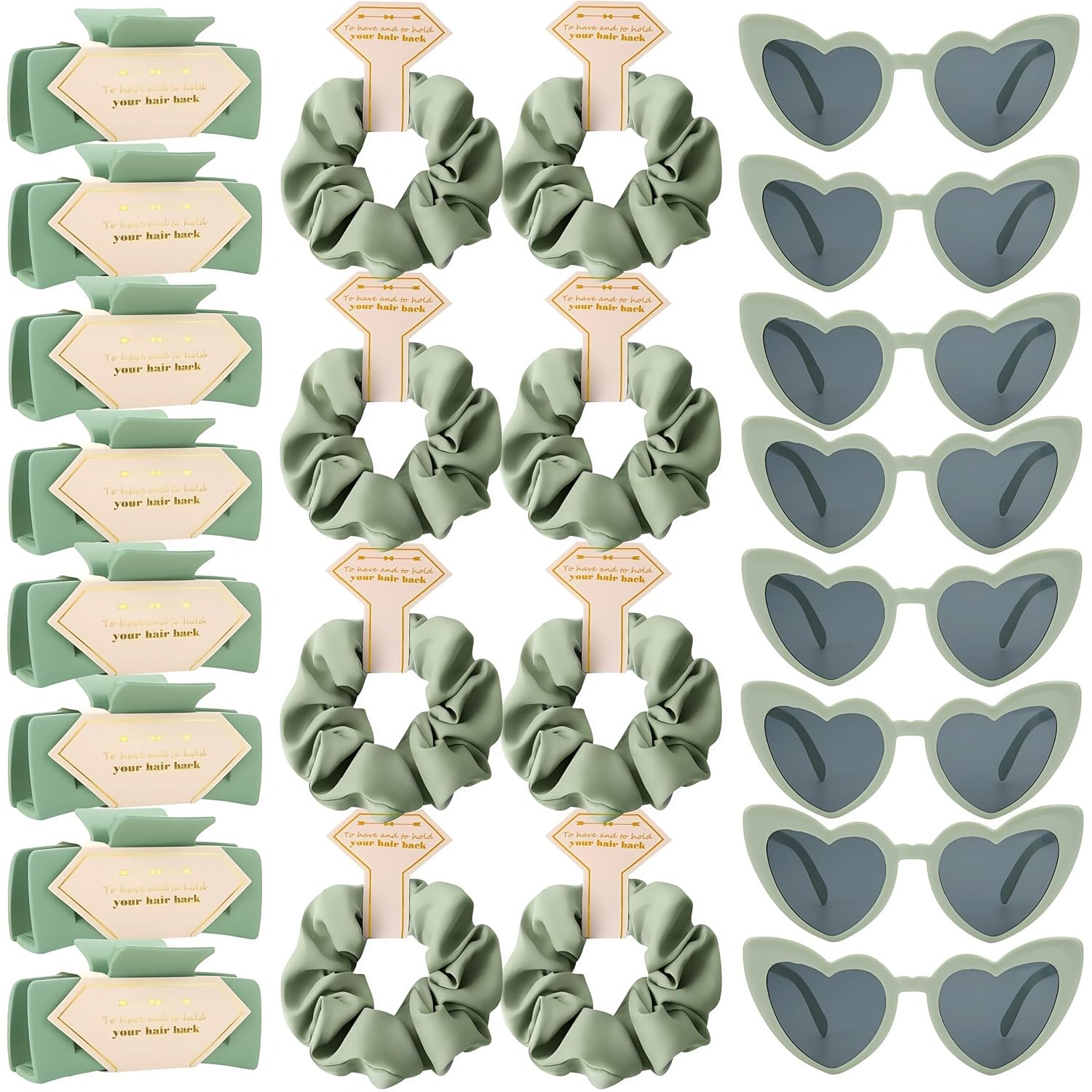 Bridesmaid Scrunchies Proposal Gifts Bachelorette Hair Claws Clips Girls heart sunglasses for Wedding Party Favors (Sage Green)