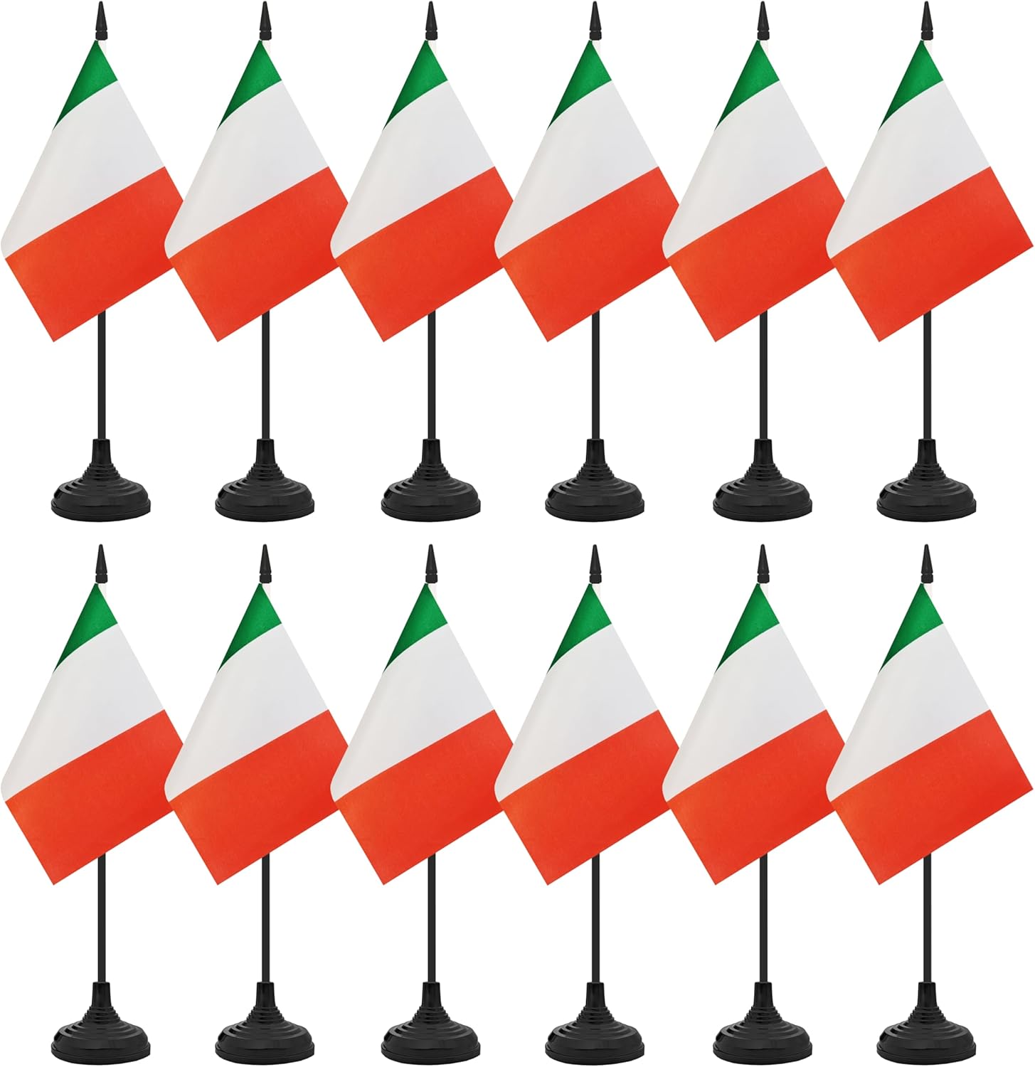 12 Pack Italy Desk Flag Set, Italian Table Office Flag, Small Miniature Desktop Flag With Black Pole and Black Base, Classroom, Offices Meeting Desk Decoration (Italy)