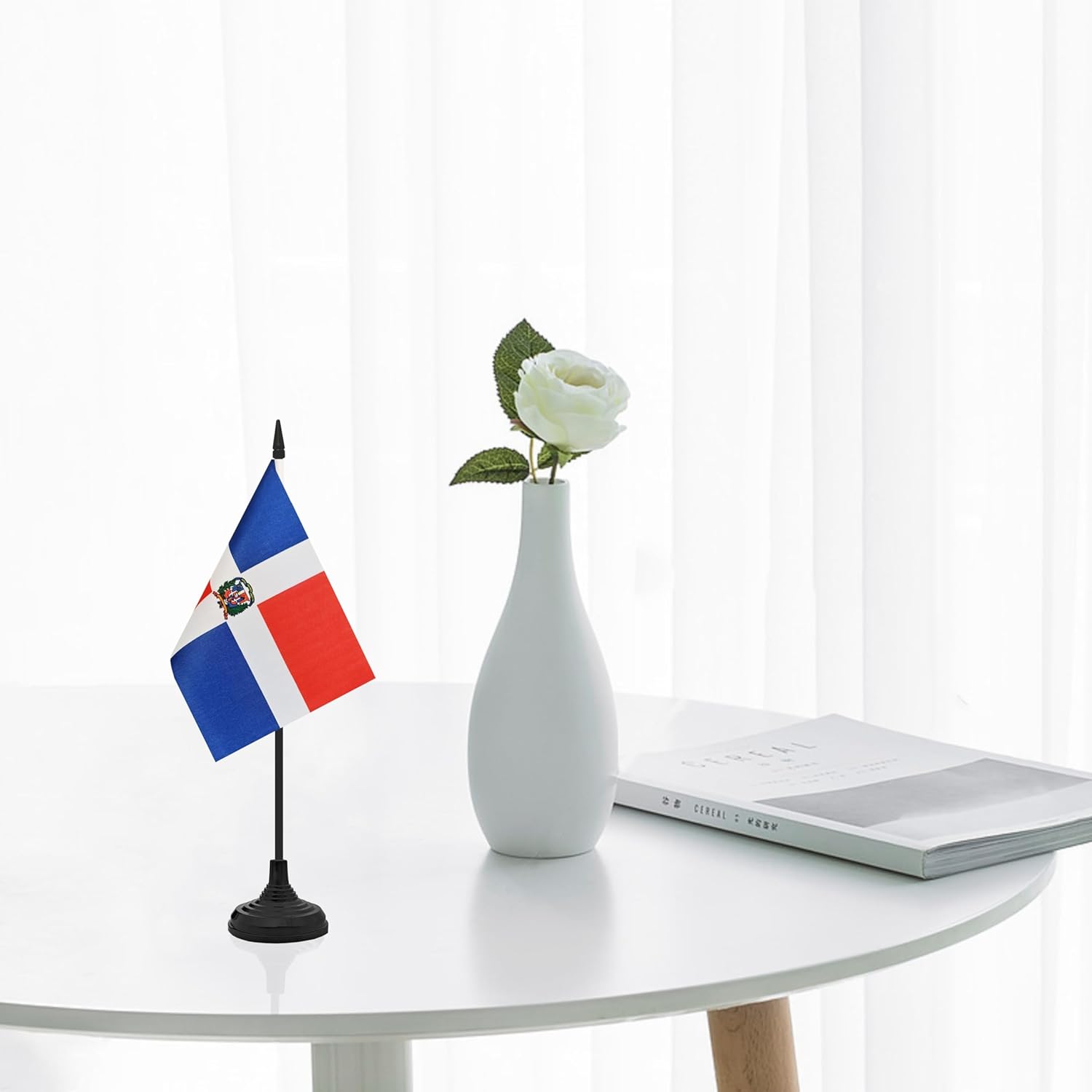12 Pack Dominica Desk Flag Set, Dominican Table Office Flag, Small Miniature Desktop Flag With Black Pole and Black Base, Classroom, Offices Meeting Desk Decoration (Dominica)