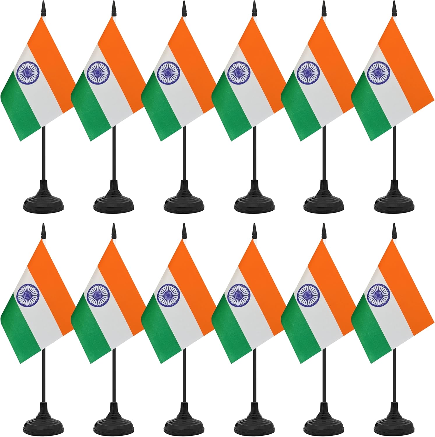 12 Pack India Desk Flag Set, Indian Table Office Flag, Small Miniature Desktop Flag With Black Pole and Black Base, Classroom, Offices Meeting Desk Decoration (India)