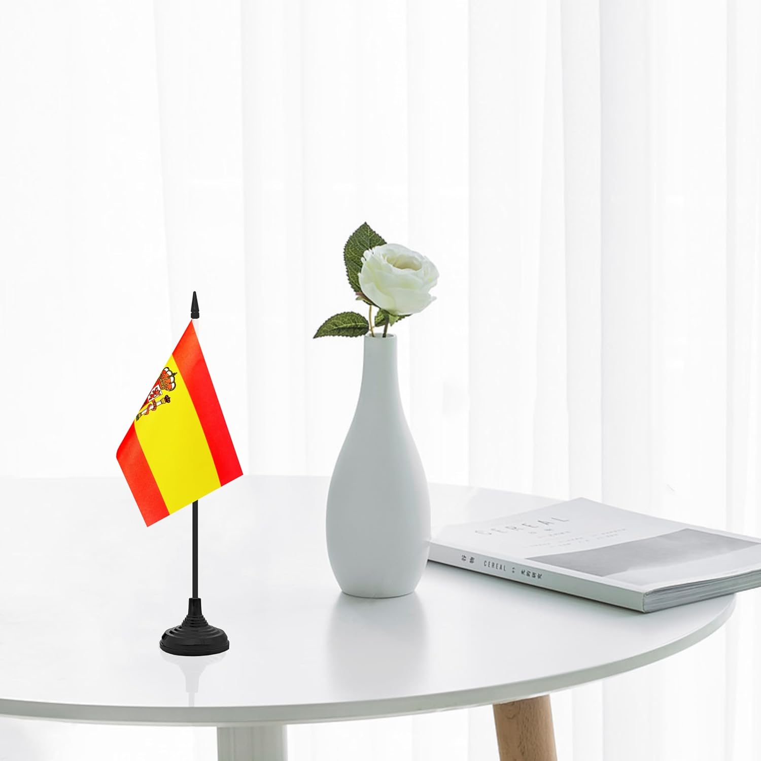 12 Pack Spain Desk Flag Set, Spanish Table Office Flag, Small Miniature Desktop Flag With Black Pole and Black Base, Classroom, Offices Meeting Desk Decoration (Spain)