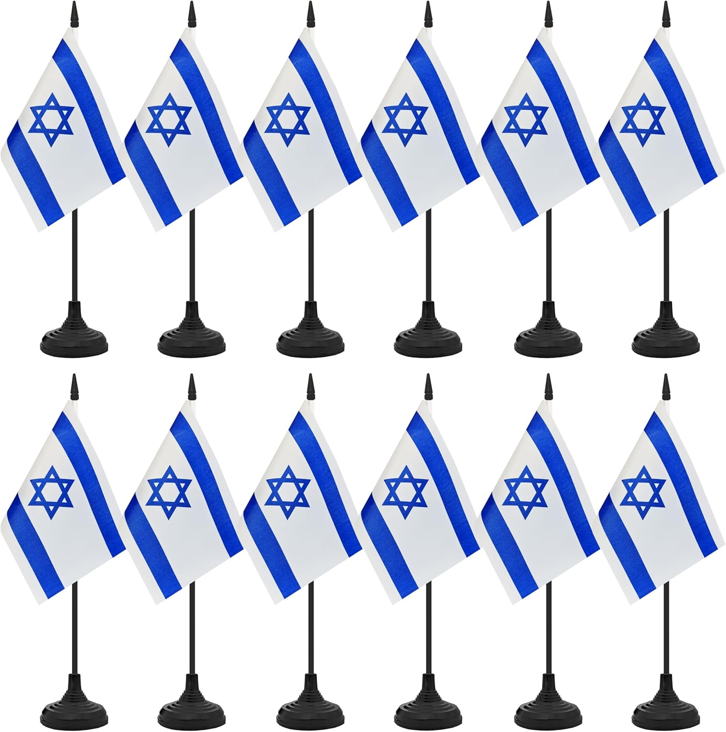 12 Pack Israel Desk Flag Set, Israeli Table Office Flag, Small Miniature Desktop Flag With Black Pole and Black Base, Classroom, Offices Meeting Desk Decoration (Israel)