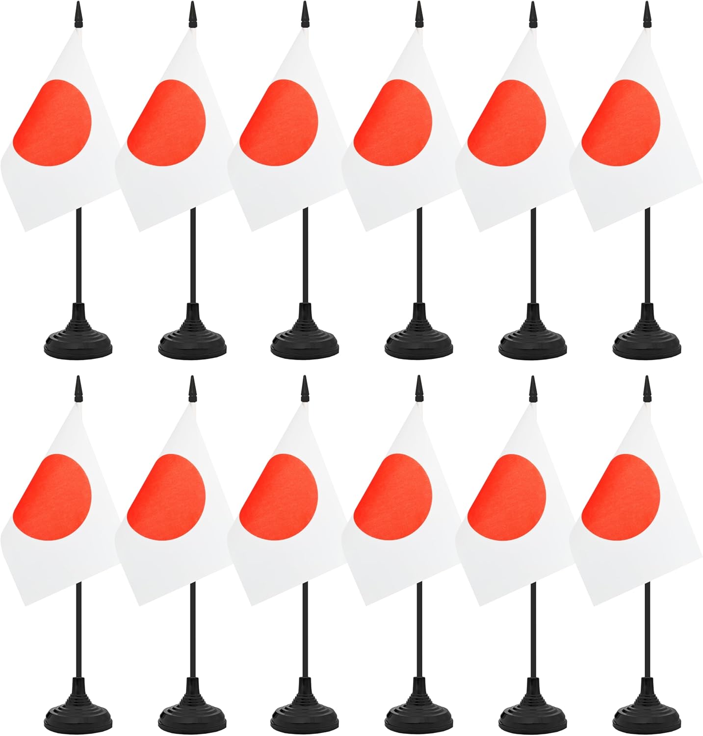 12 Pack Japan Desk Flag Set, Japanese Table Office Flag, Small Miniature Desktop Flag With Black Pole and Black Base, Classroom, Offices Meeting Desk Decoration (Japan)