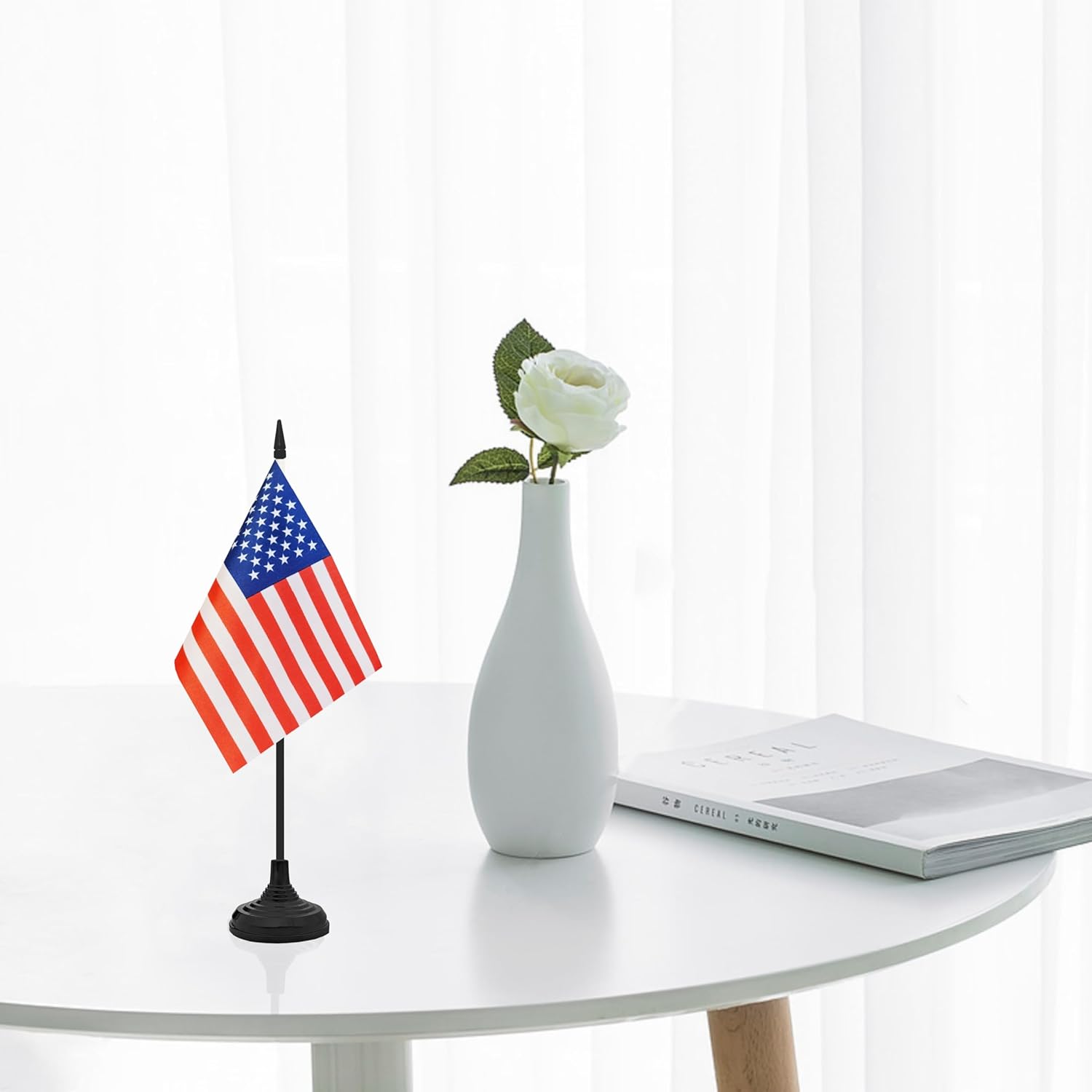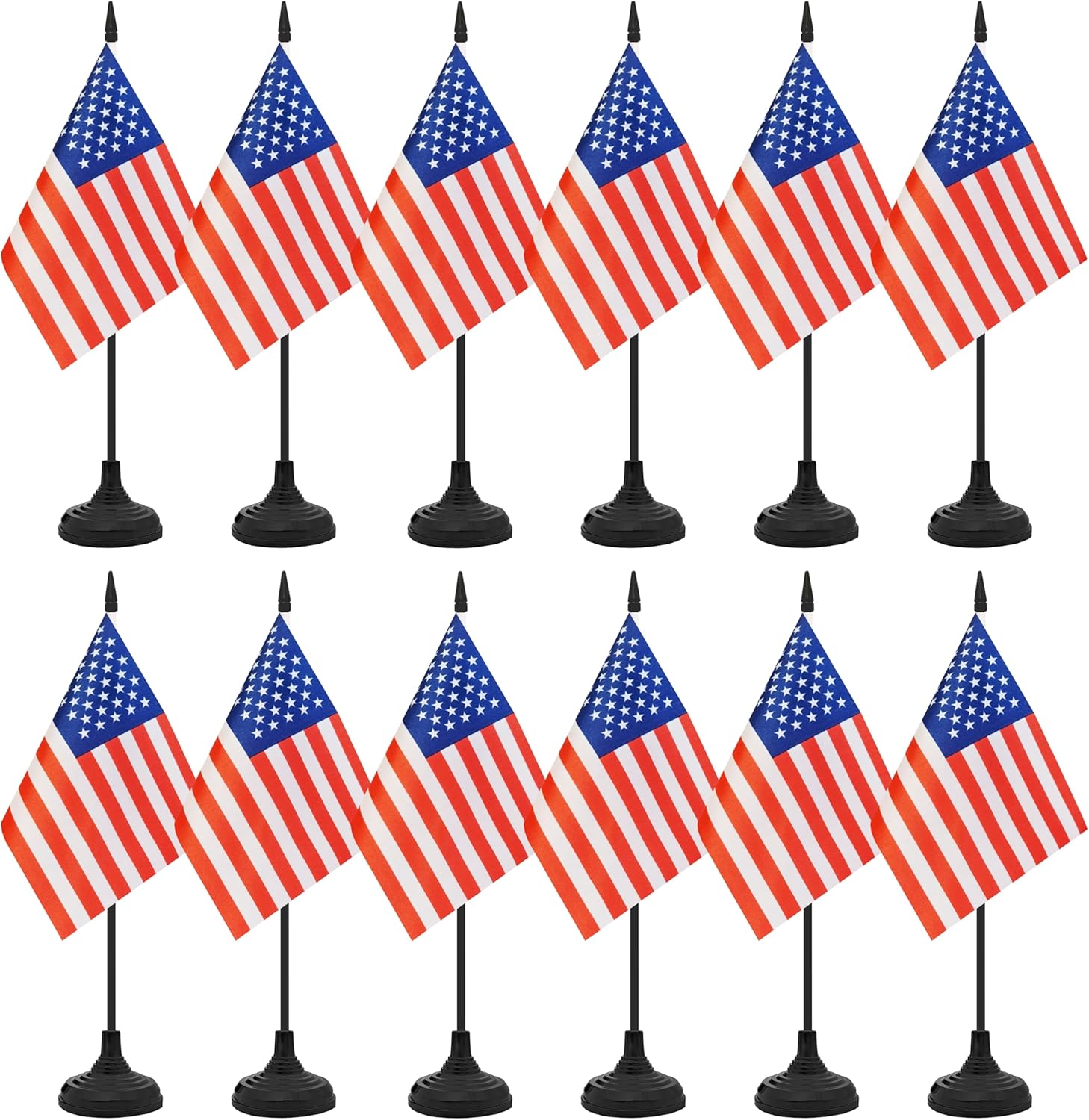 12 Pack USA Desk Flag Set, American Table Office Flag, Small Miniature Desktop Flag With Black Pole and Black Base, Classroom, Offices Meeting Desk Decoration (USA)