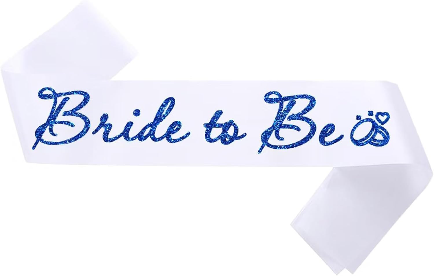 White Bride to Be Sash for Bridal Shower Bachelorette Party Wedding Hen Party Decorations Engagement Gifts Favors Miss to Mrs Sash with Glitter Letter Blue