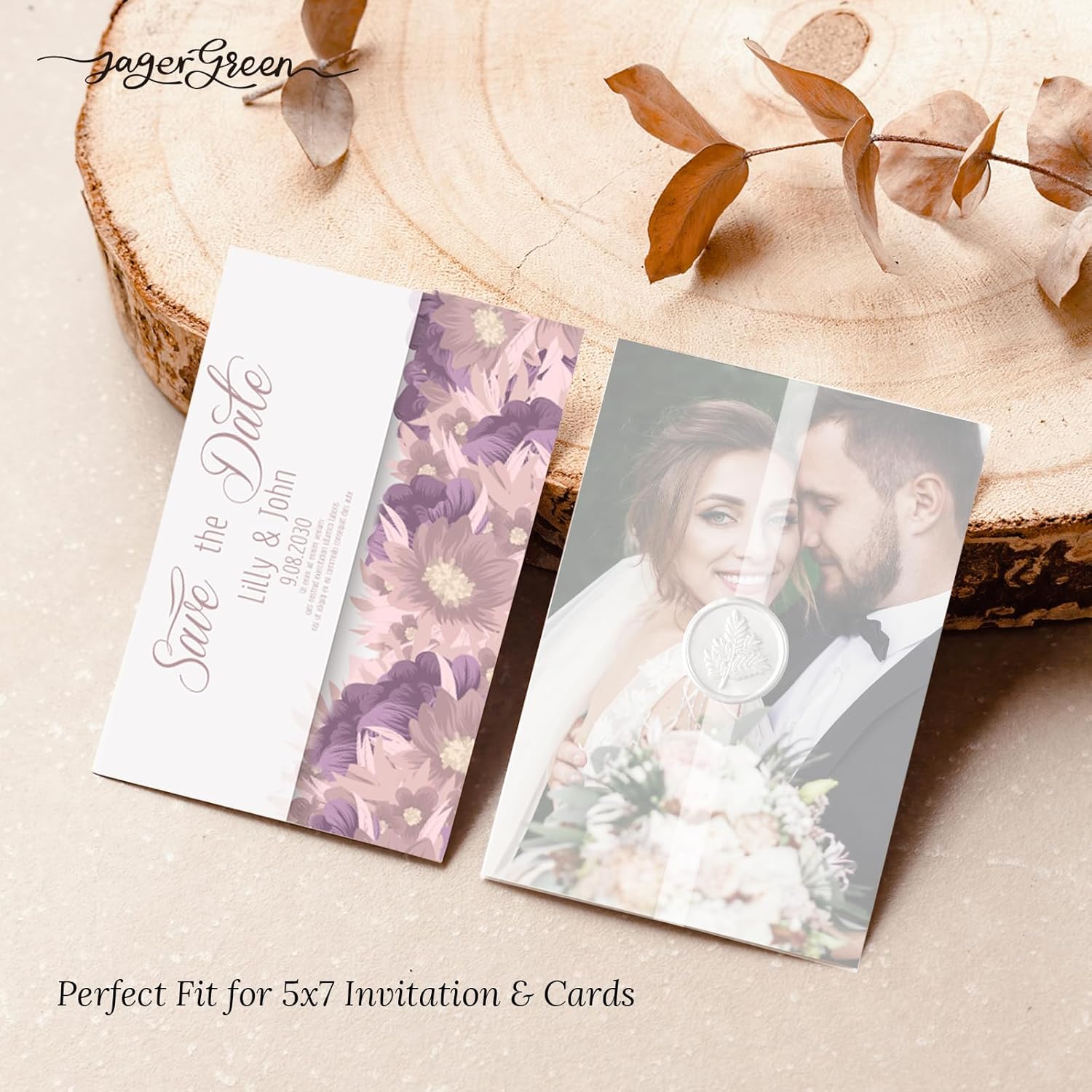 JAGERGREEN 50 Pack Vellum Jackets for 5x7 Invitations Pre-Folded, 115 GSM Translucent Printable Vellum Paper 5x7, Vellum Wraps for Wedding Invitations Sleeves, Birthday Greeting Cards, DIY Crafts