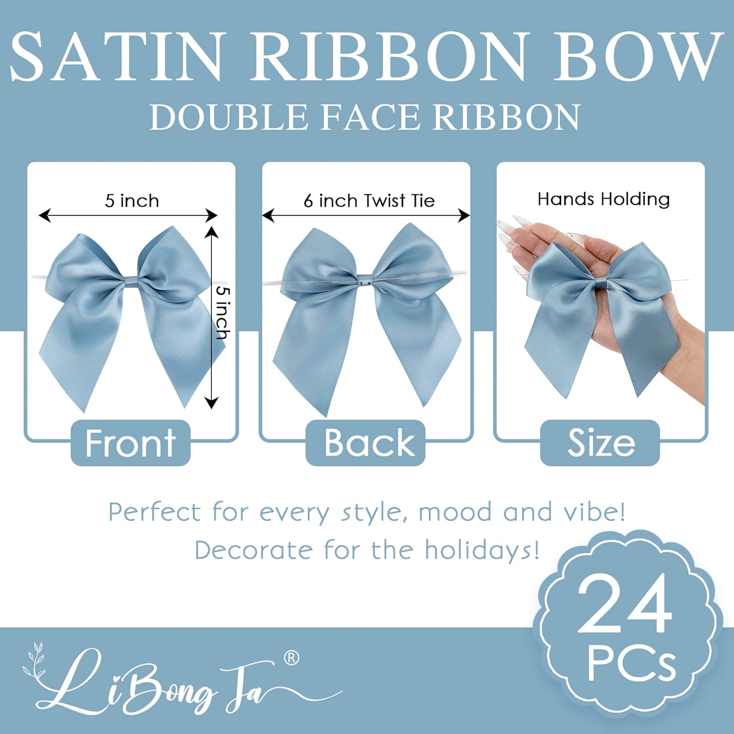 5'' Dusty Blue Bow Party Decorations Satin Bows, Twist Tie Bows for Treat Bags, Cake Pops, Pre-tied Bow Premade Ribbon Bows for Crafts, Holiday Bows for Gift Wrapping, Wedding Decor-24 Counts
