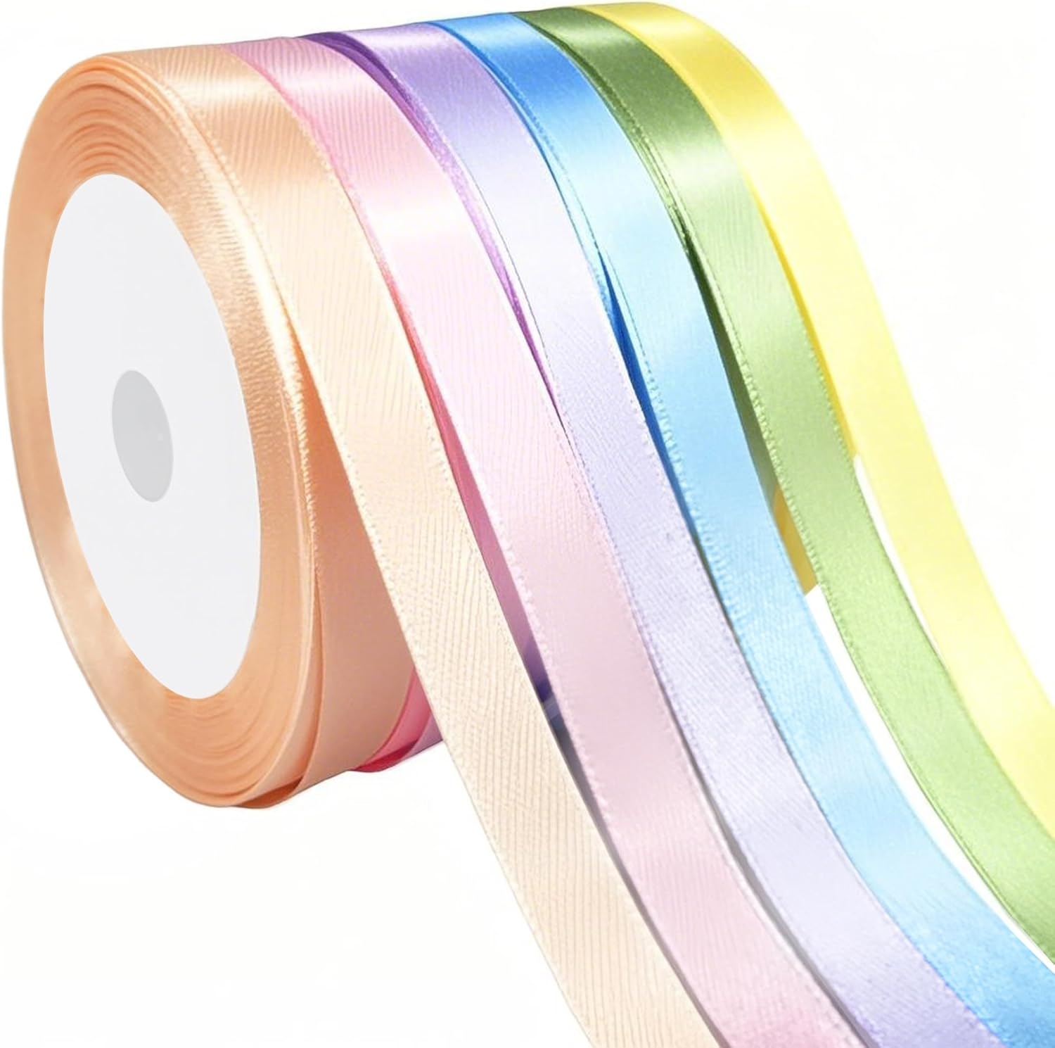 3/8" 6 Colors X 25 Yards Light Rainbow Satin Ribbon,150 Yards Assorted Colors Satin Ribbons for Flower Bouquet,Ribbons for Gift Wrapping Happy Birthday Party Decorations