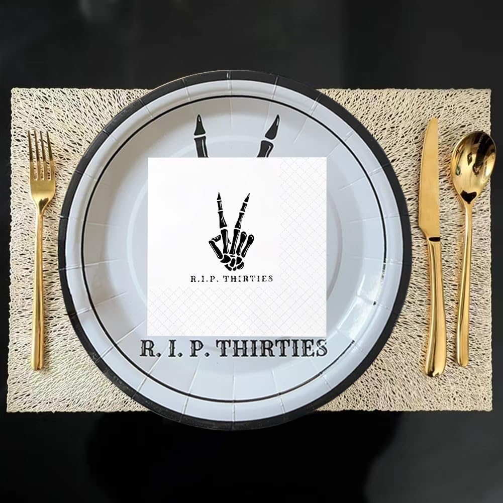SharkBliss RIP Thirties Party Supplies 240 PCS – Paper Cocktail Napkins Party Cups Water Bottle Labels Toothpick Flags Drinking Straws Gift Tags Forks Plates for Death to My 30s 40th Birthday