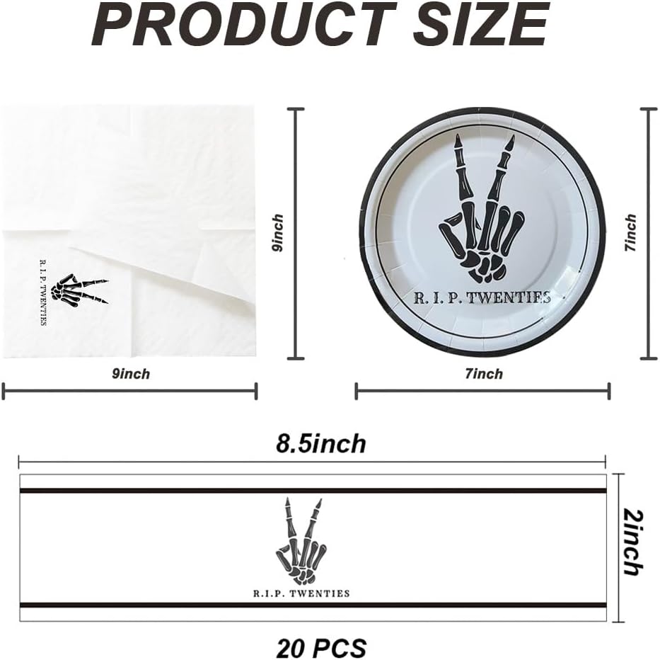 SharkBliss RIP Twenties Party Supplies 240 PCS – Paper Cocktail Napkins Party Cups Water Bottle Labels Toothpick Flags Drinking Straws Gift Tags Forks Plates for Death to My 20s 30th Birthday