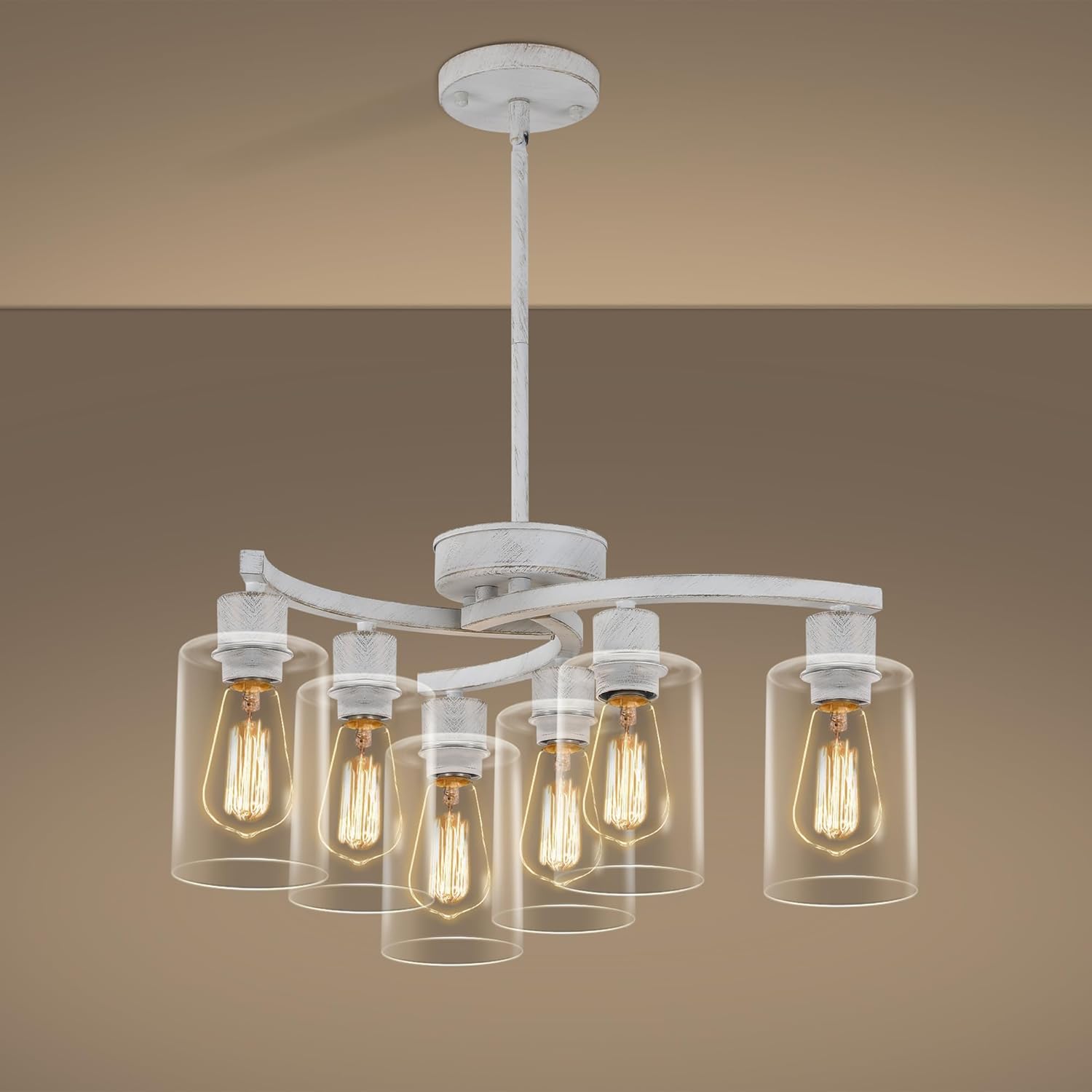 - Dimmable: Max 6 x 60W, E26 Base (bulb not included), compatible with LED, incandescent, CFL, halogen. White hanging chandelier also compatible with dimmer, you can use a dimmable bulb to create a warm and relaxed atmosphere (Dimmer switch need to buy separately).