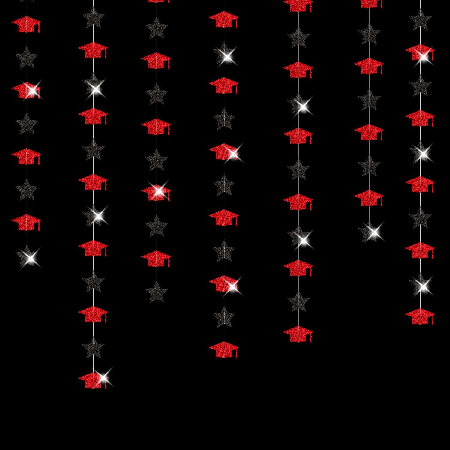 - 【Package Contains】This set has 4 red black graduation hat star banner garland,the length of each strand is 3.7 meters/12.1 feet, the total length is 14.8 meters/48.4 feet,the grad hat size is 2.8” and star size is 2”.