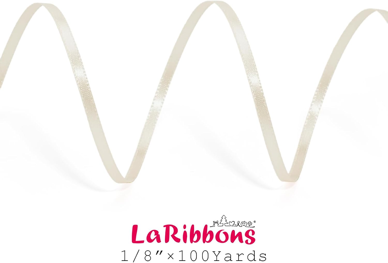 LaRibbons Nude Satin Ribbon 1/8 Inch 100 Yards Thin Luxury Double Faced Ivory Silk Ribbon for Flower Bouquet Crafts Gift Wrapping Wedding Bow Christmas Decoration