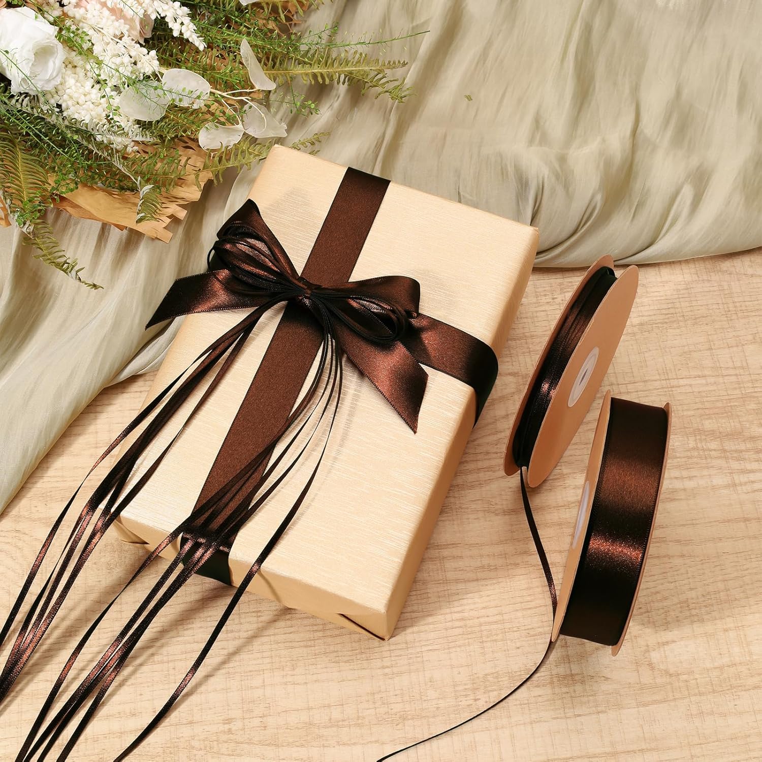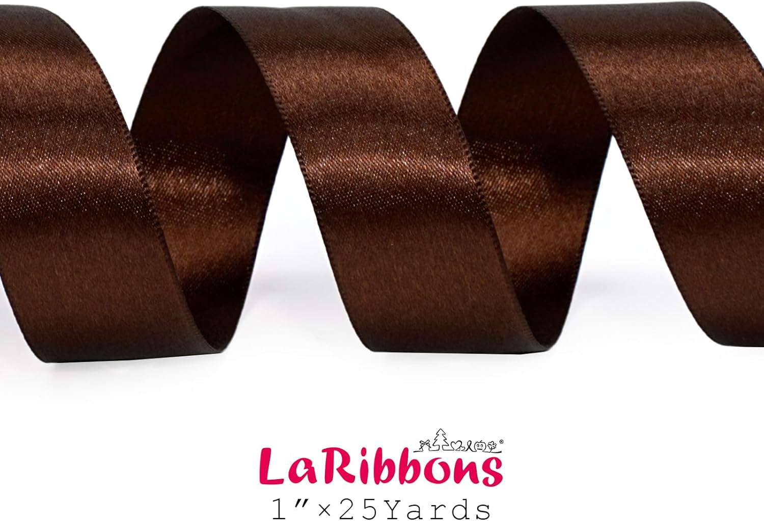 LaRibbons Brown Ribbon 1 Inch 25 Yards Luxury Double Faced Friar Brown Silk Ribbon for Flower Bouquet Crafts Gift Wrapping Wedding Party Decoration