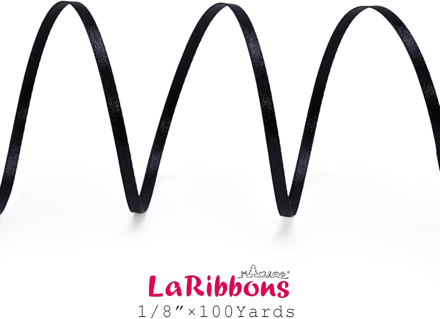 LaRibbons Black Satin Ribbon 1/8 Inch 100 Yards Thin Luxury Double Faced Red Silk Ribbon for Flower Bouquet Crafts Gift Wrapping Bow Christmas Decoration