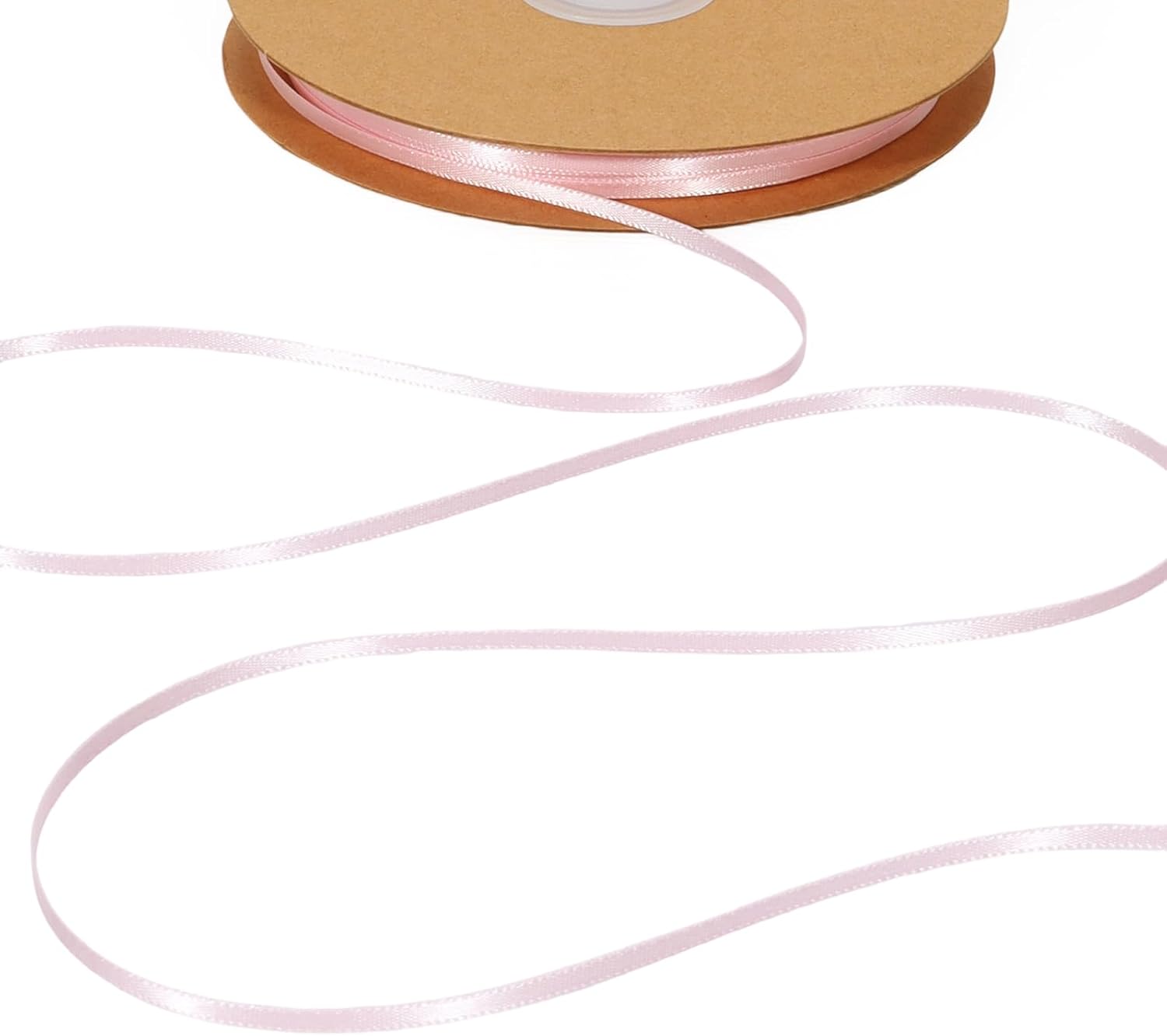 LaRibbons Light Pink Satin Ribbon 1/8 Inch 100 Yards Thin Luxury Double Faced Pink Silk Ribbon for Gift Wrapping Flower Bouquet Crafts Wedding BabyShower Decoration
