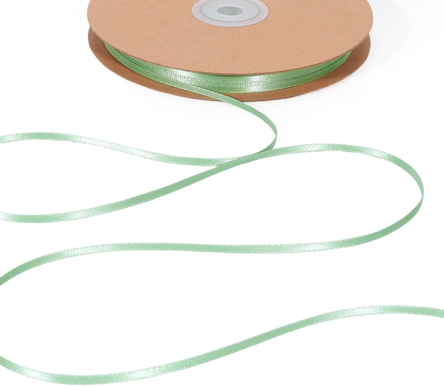 LaRibbons Sage Green Satin Ribbon 1/8 Inch 100 Yards Thin Luxury Double Faced Green Silk Ribbon for Flower Bouquet Crafts Gift Wrapping Wedding Decoration