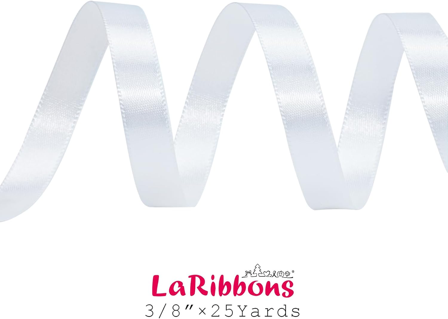 LaRibbons White Ribbon 3/8 Inch 25 Yards Luxury Double Faced White Silk Ribbon for Flower Bouquet Crafts Gift Wrapping Wedding Party Decoration