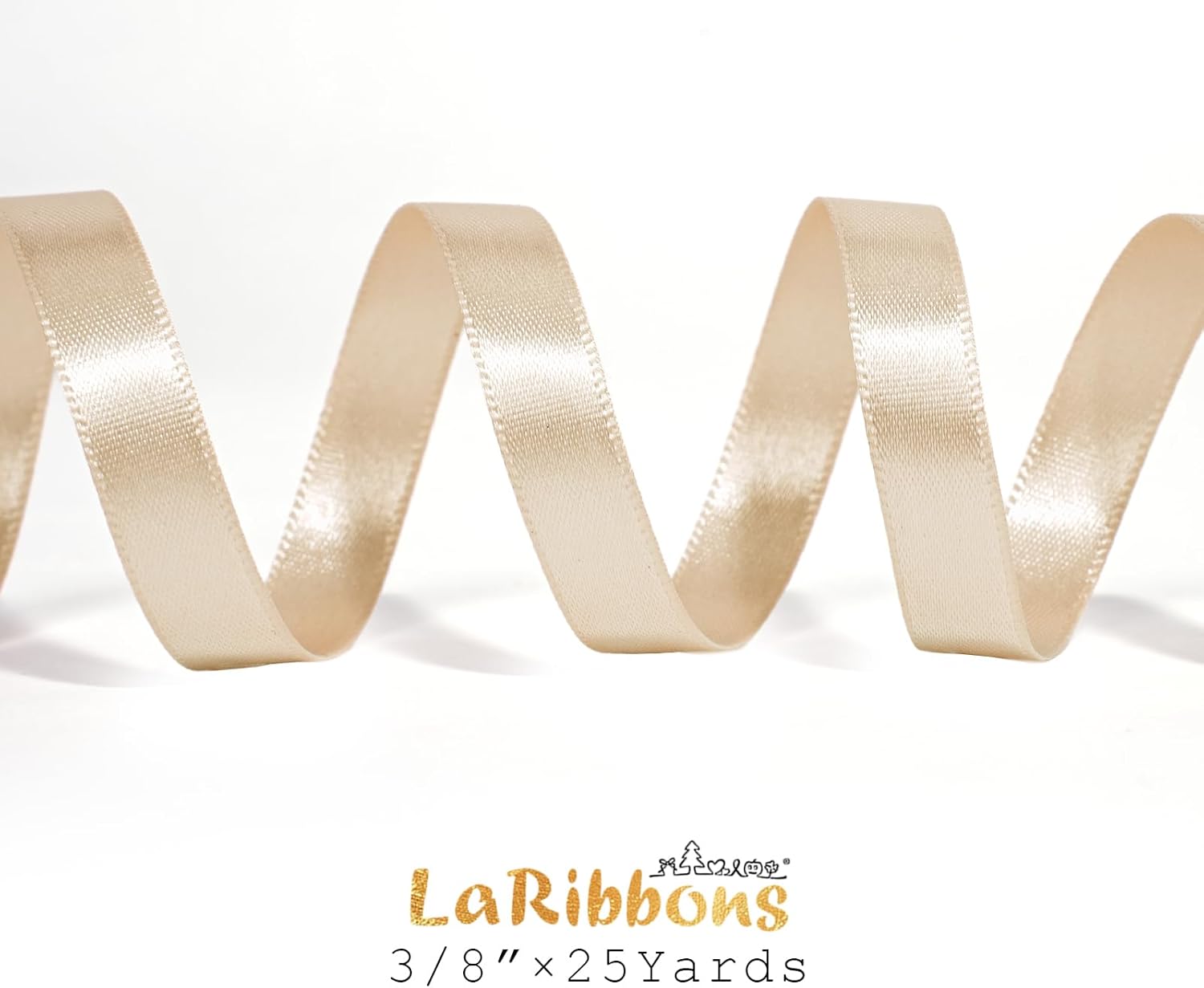 LaRibbons Nude Satin Ribbon 3/8 Inch 25 Yards Luxury Double Faced Silk Ribbon for Flower Bouquet Crafts Gift Wrapping Wedding Party Decoration