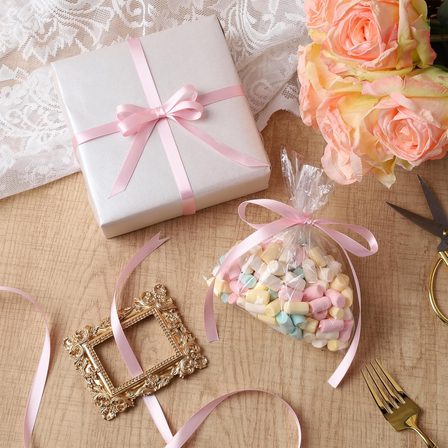 LaRibbons Light Pink Satin Ribbon 3/8 Inch 25 Yards Luxury Double Faced Pink Silk Ribbon for Gift Wrapping Flower Bouquet Crafts Wedding Party Babyshower Decoration