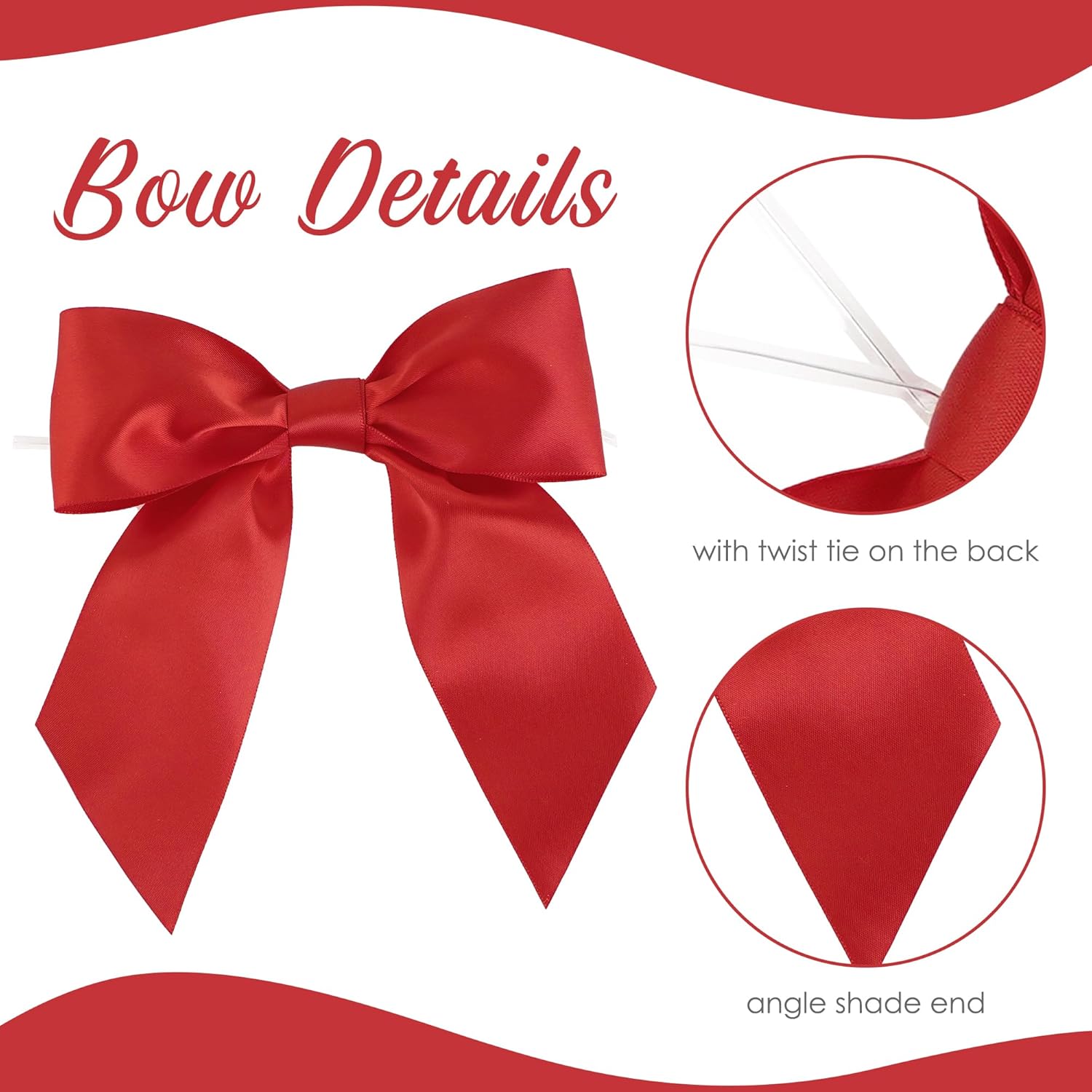 - [Size]:You will receive 24 pieces red twist tie bows, each bow is 5.5 inches long and 5.5 inches wide, with angled ends. Sufficient quantity allows you to have unlimited possibilities for your handicrafts.