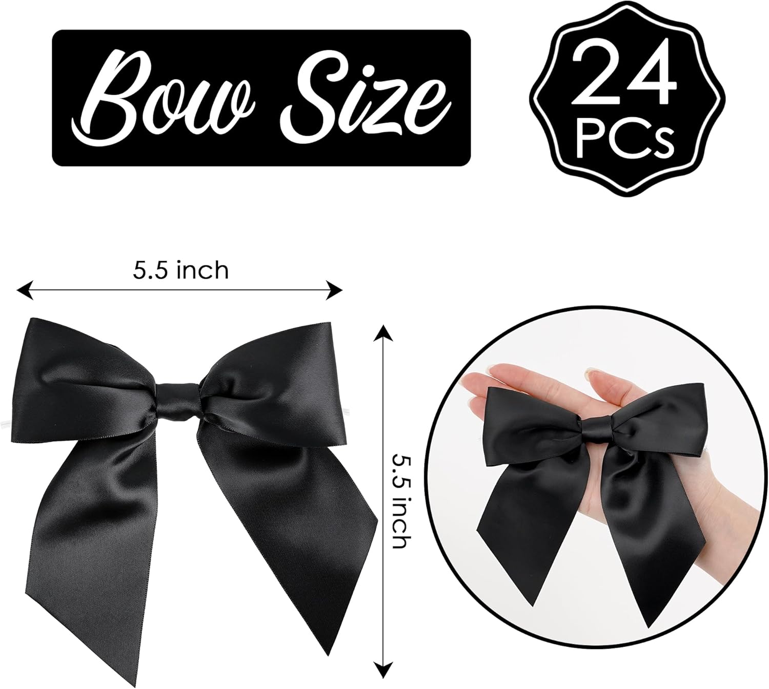AIMUDI Black Satin Bows 5.5" Bows for Gift Wrapping Satin Twist Tie Bow Premade Ribbon Bow for Treat Bags Invitations Baskets Wreaths Crafts Wedding Birthday Party Baby Shower Decorations, 24 PCs