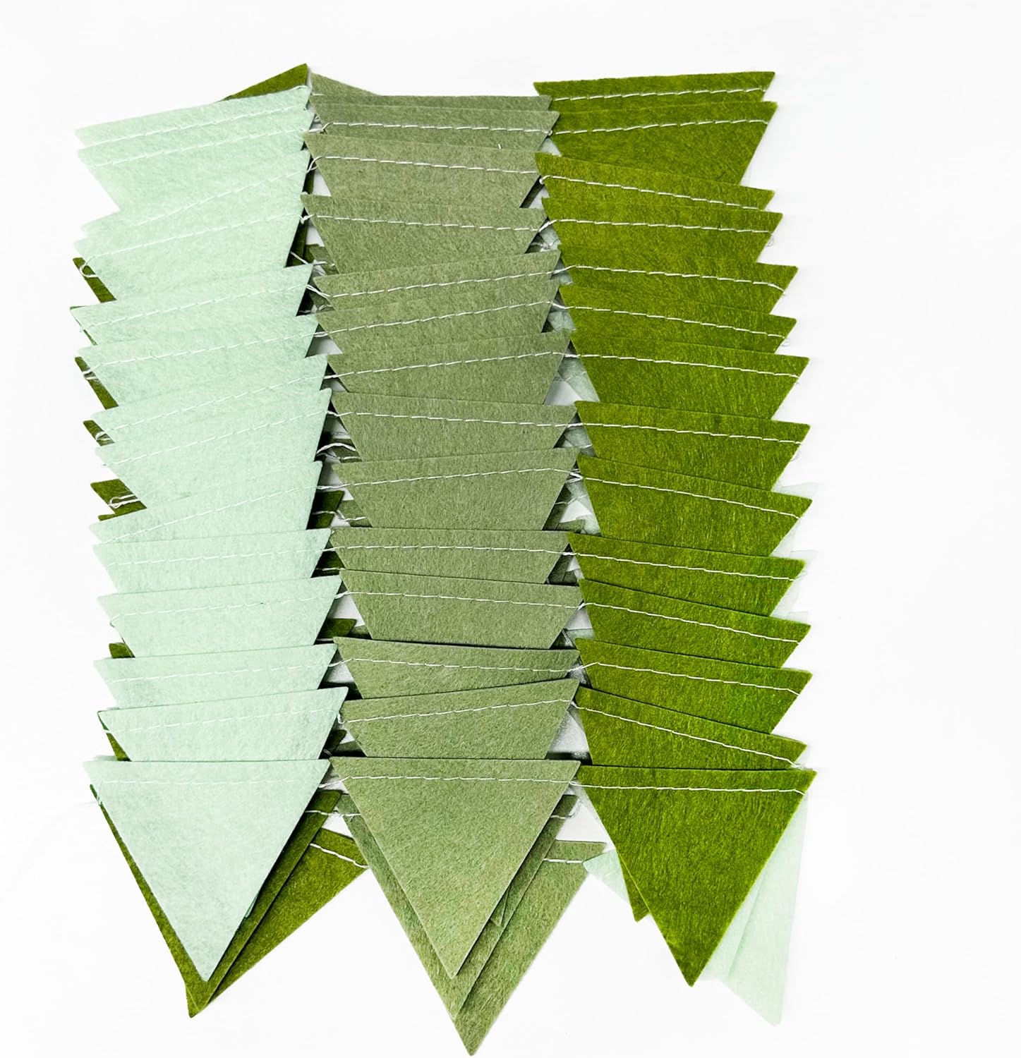 - Easy Assembly - Easy hanging and reusable.Perfect fit for olive green party decor.unroll and unwrap garland carefully. due to delicate nature of thread,may tangle.This ombre sage green mini triangle pennant makes an attractive backdrop for videos and photos.