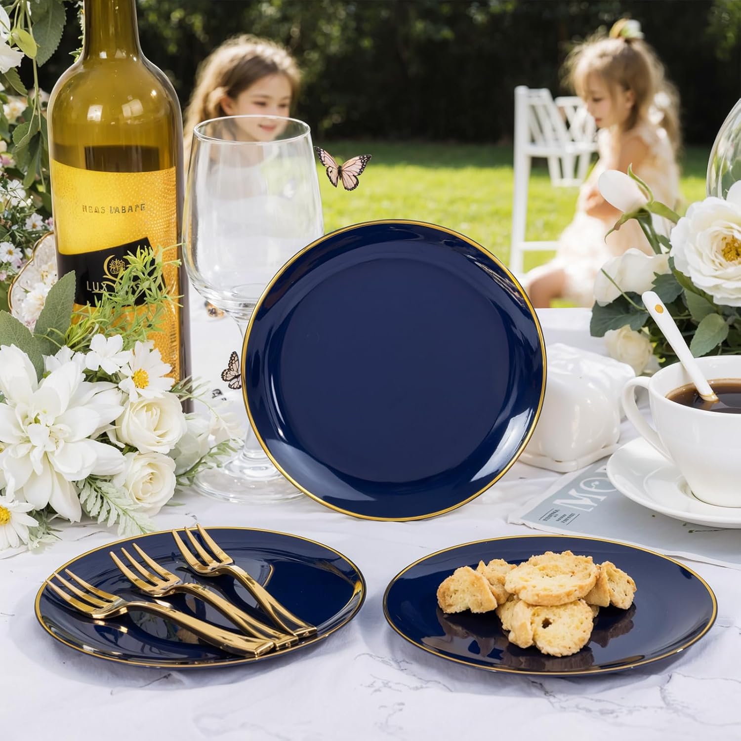 - SUITABLE FOR ANY OCCASION: Our dessert plates disposable crush every occasion: elegant navy & gold graduation parties, Christmas or bridal showers.These blue plastic plates are stylish and easy to use, making them a must-have item in your kitchen.