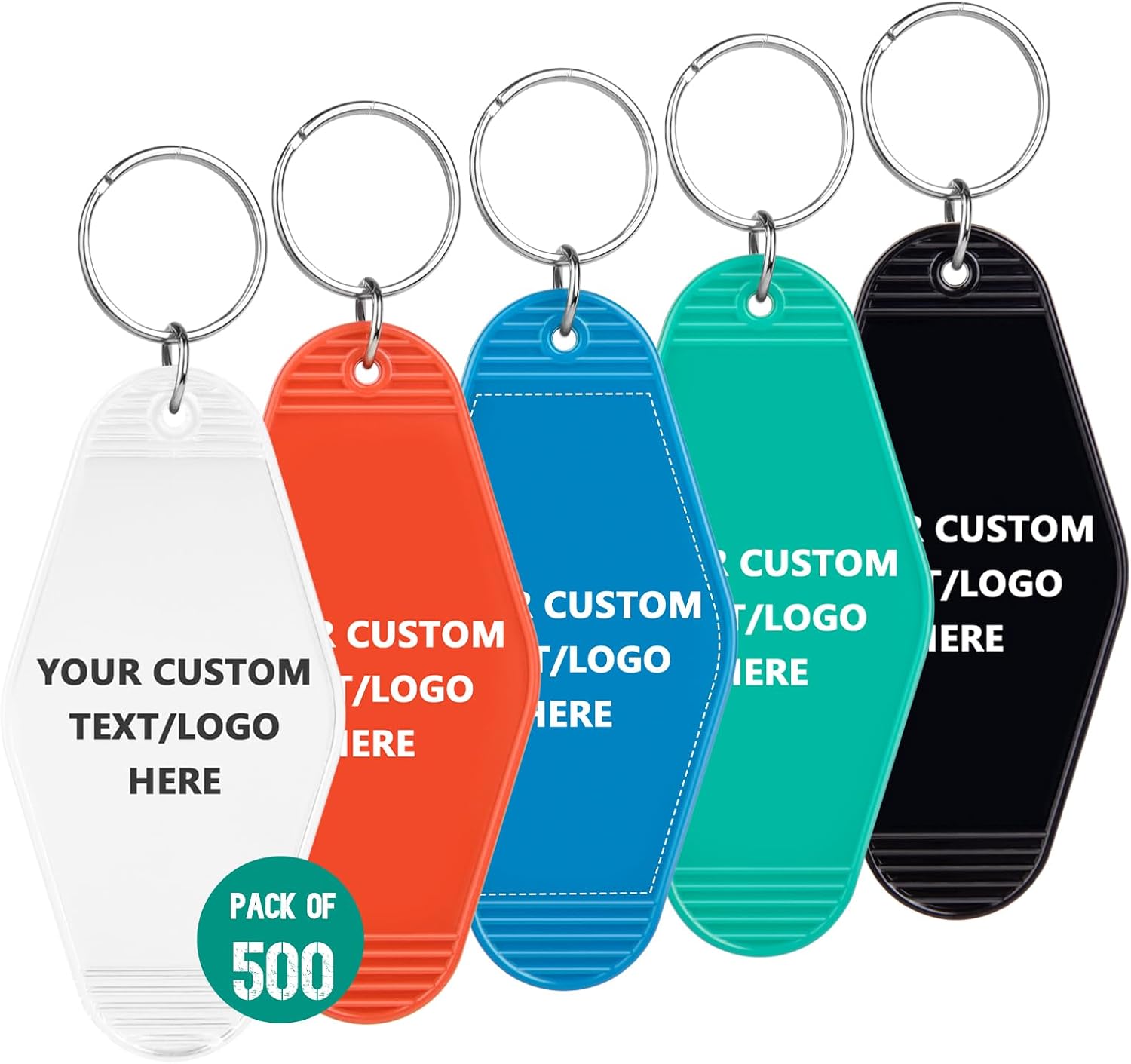 Custom Vintage Hotel Motel Keychains 500 Pack, Personalized Logo, Text Bulk - Perfect for Tradeshows, Campaign Gifts - Customizable Key Tags