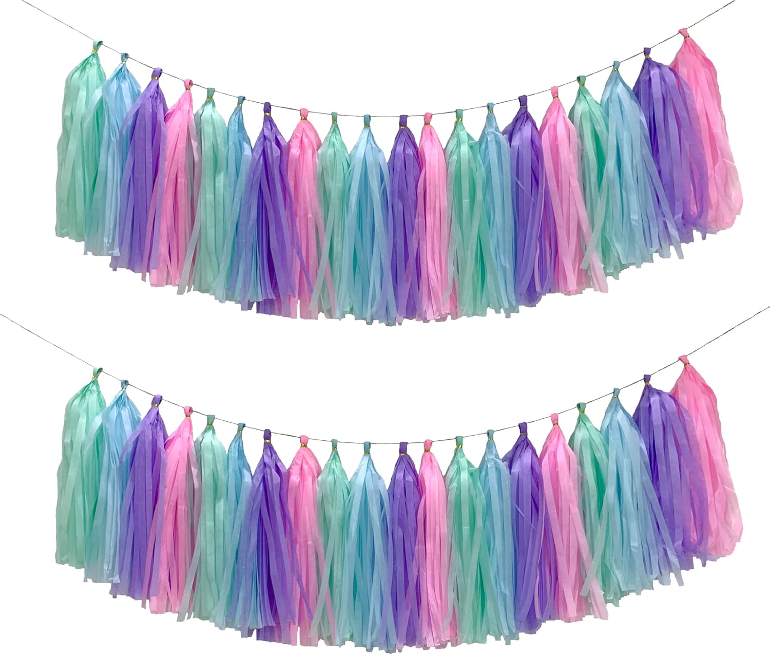 Blue Purple Mint Green Pink Tissue Paper Tassel Garland,Tissue Tassel Banner for Party Decorations,Pack of 20