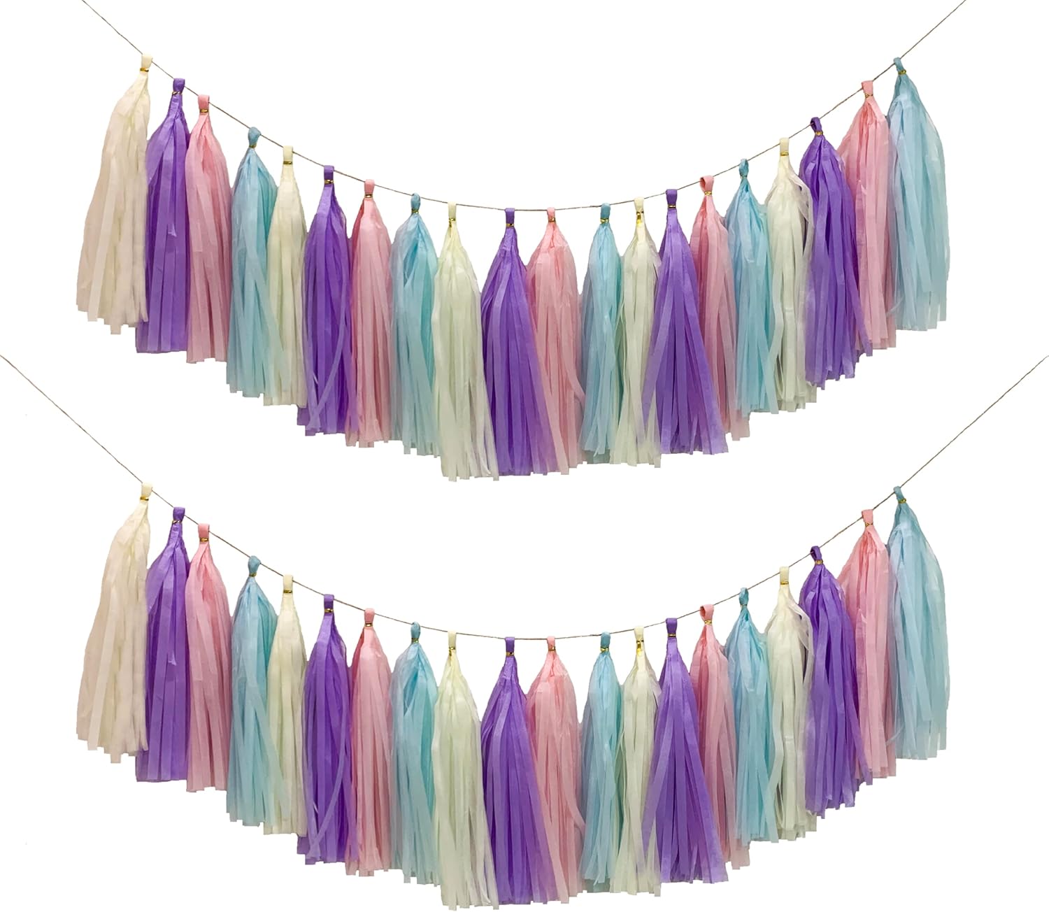 Pastel Rainbow Colorful Tissue Paper Tassel Garland,Tissue Tassel Banner for Party Decorations,Pack of 20
