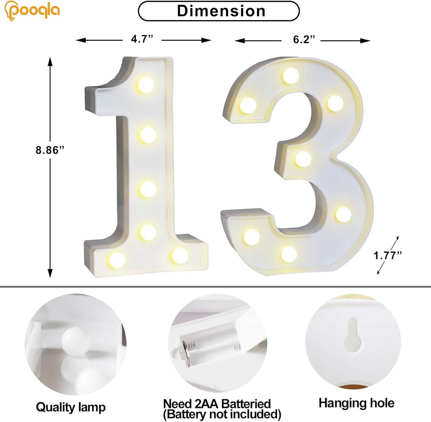 Pooqla 13th Birthday Decoration for Girls Boys, Decorative LED Light Up Numbers, Marquee Numbers 13 Sign for Party Backdrop 13th Wedding Anniversary Decor, Warm White and Cool White Number 13
