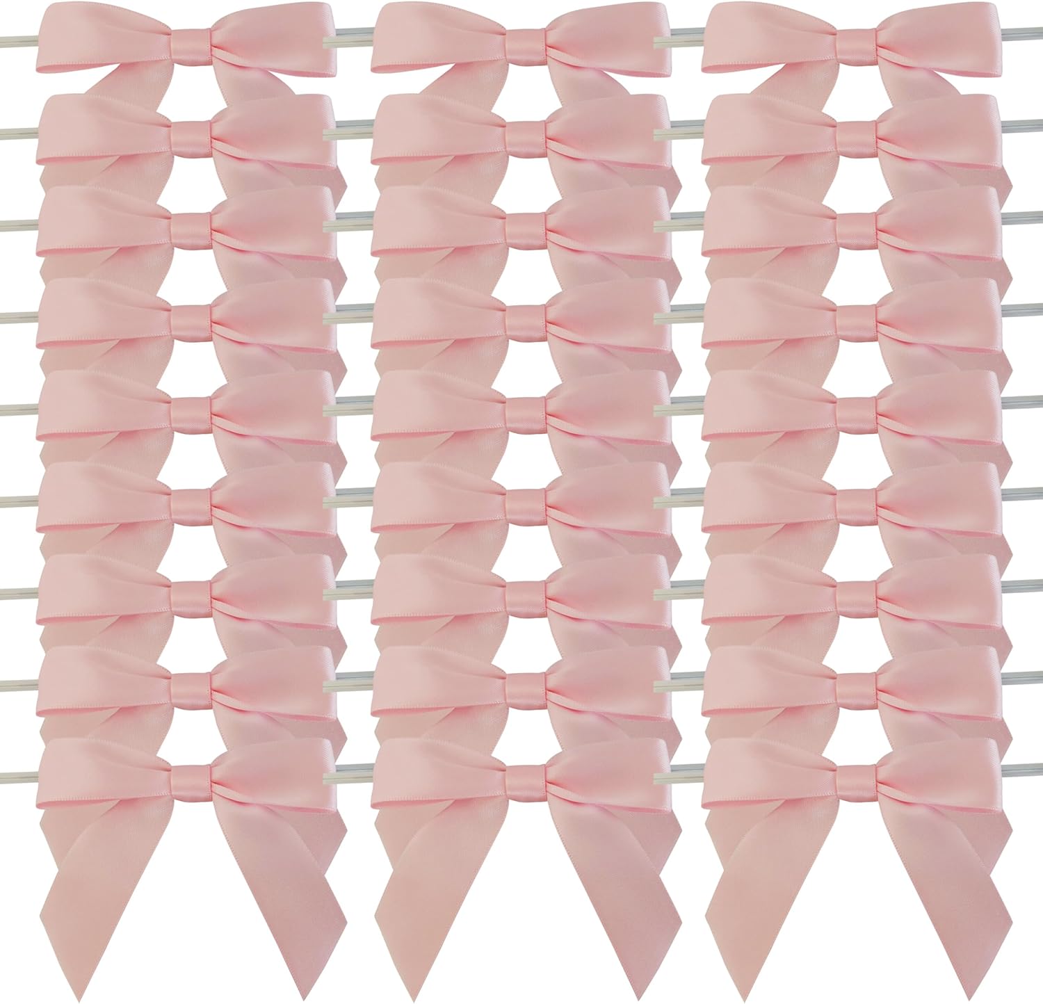 50pcs 3-1/2" Light Pink Satin Ribbon Bows with Twist Ties for Gift Wrapping Packing Wedding Big Ribbon Bows for Accessories Decoration (Lt.Pink)