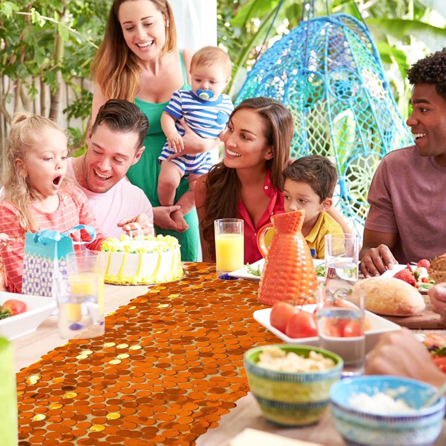 - What You Get: The package includes 1 orange sequin table runner.