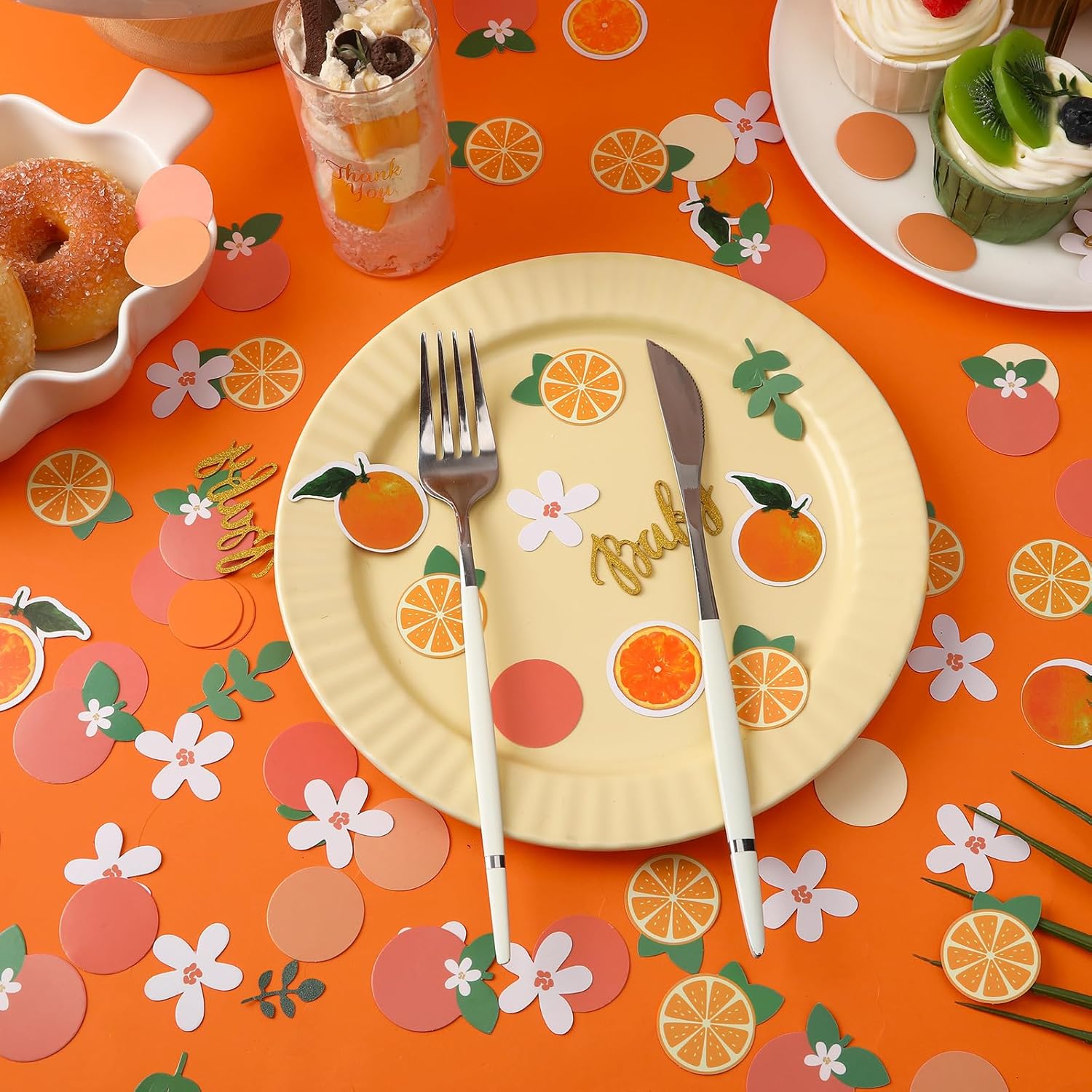 MARFOREVER 500 Pcs Little Cutie Baby Shower Confetti Citrus Decoration Orange Baby Shower Confetti Tangerine Eucalyptus Scatter for Gender Reveal Birthday Party Table Decoration Supplies