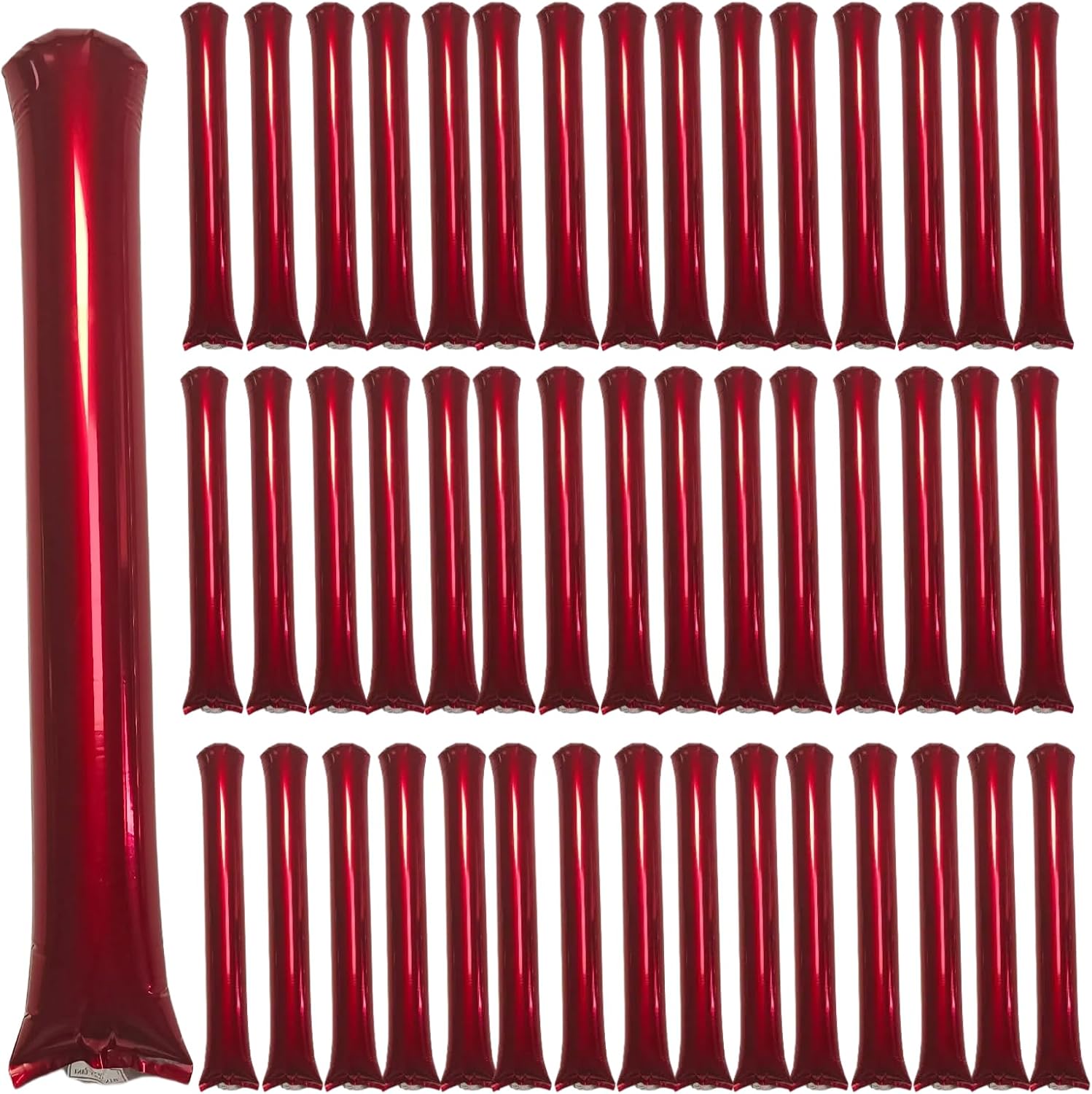 48pcs Round Head Boom Sticks Thunder Sticks Cheering Sticks Team Spirit Plastic Cheerleading Spirit Stick Clapper Inflatable Noise Maker Sports Supply (Metallic red)