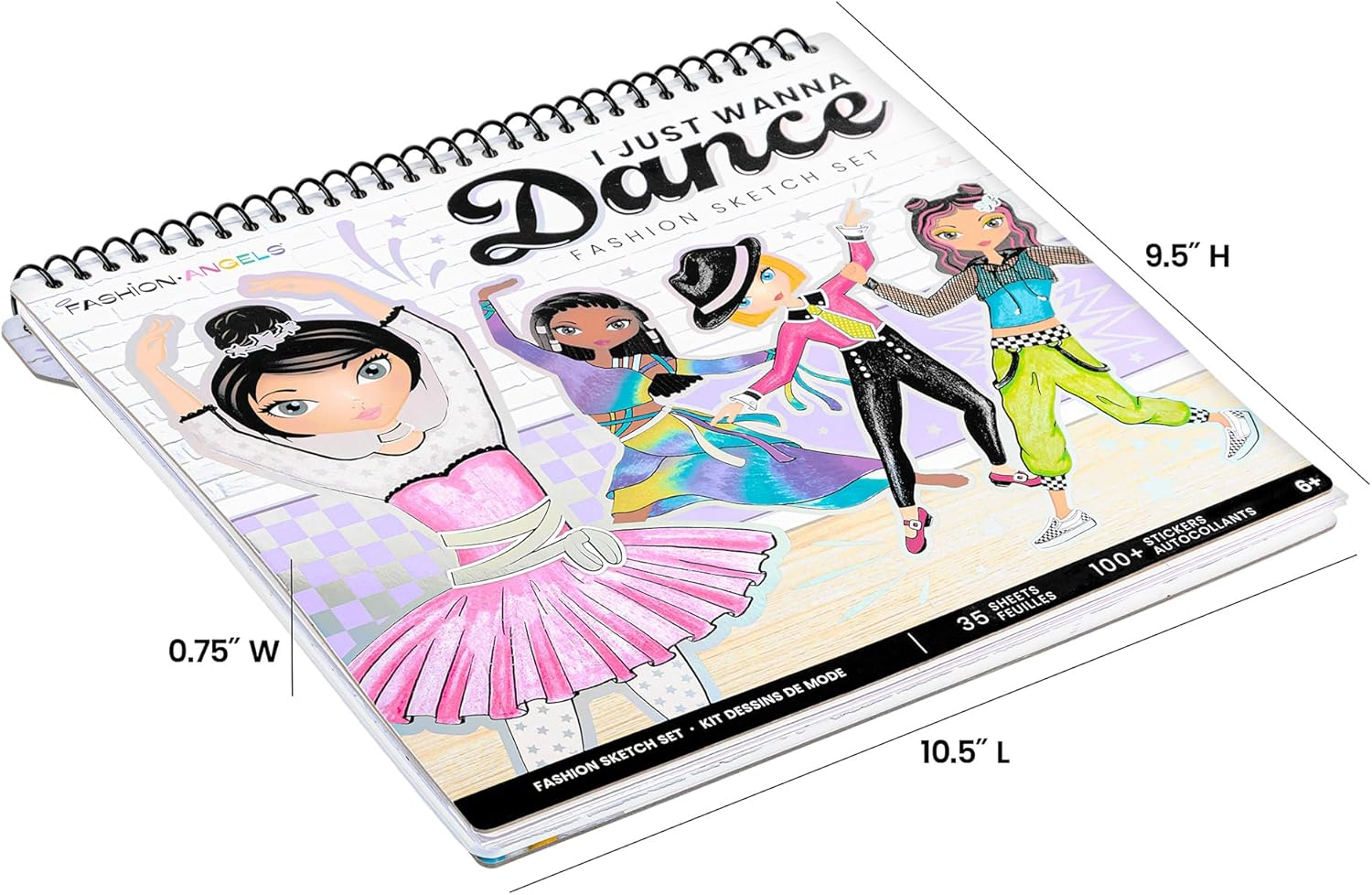 Fashion Angels I Just Wanna Dance Fashion Sketch Set, Create Dance-Themed Outfits with 35 Sketch Pages, 100+ Stickers & Stencils, Fun Craft Kit for Kids
