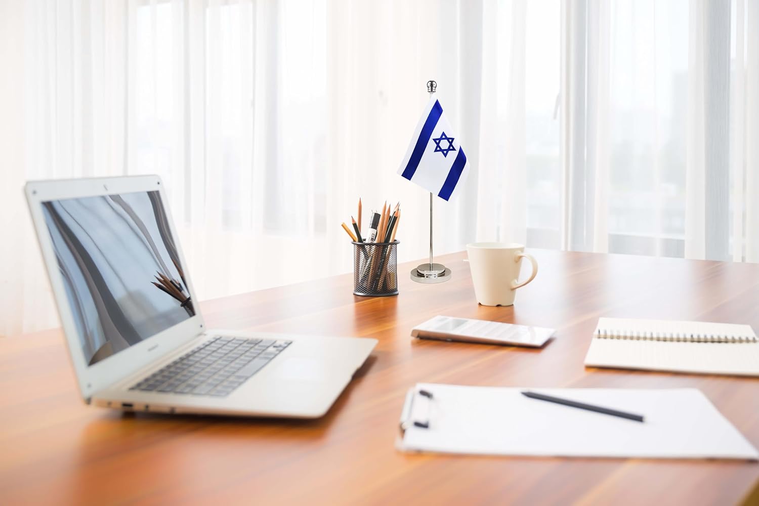 Israel Israeli Deluxe Desk Flag Set Small Mini Miniature Israel Israeli Table Desktop Flags,Festival Events Celebration,Office Decoration-2 Pack