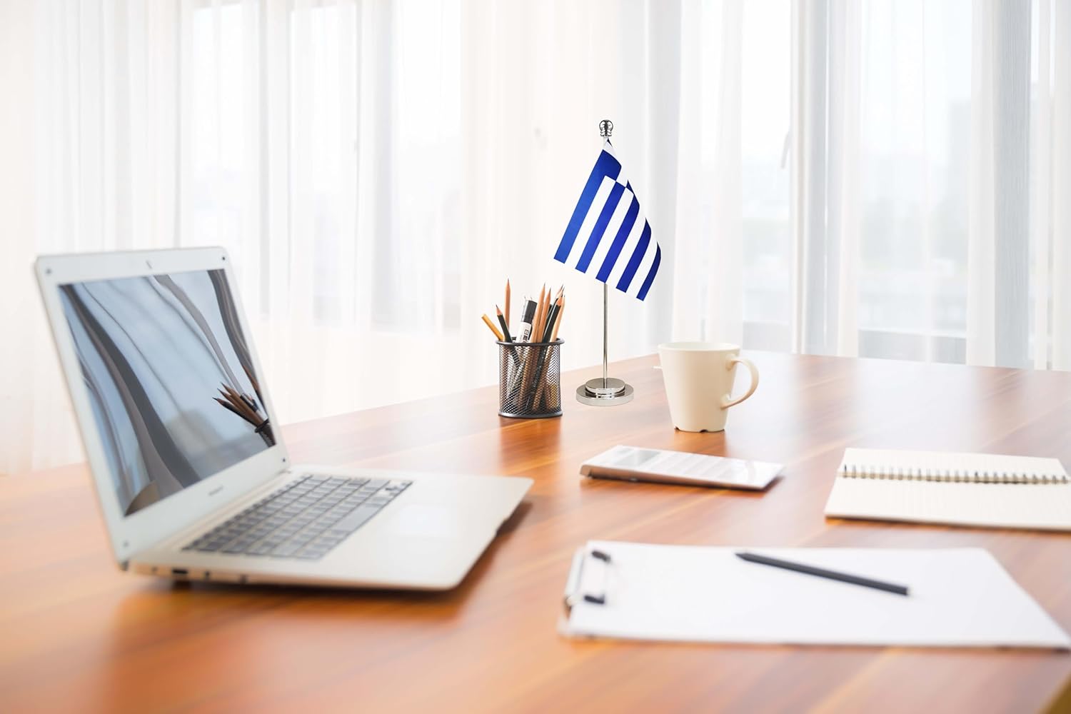 Greece Greek Deluxe Desk Flag Set Small Mini Miniature Greece Greek Table Desktop Flags,Festival Events Celebration,Office Decoration-2 Pack