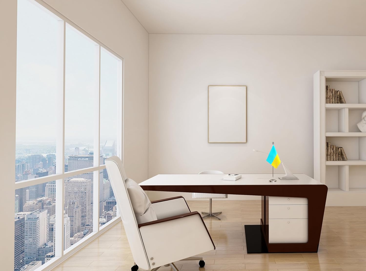 Ukraine Ukrainian Deluxe Desk Flag Set Small Mini Miniature Ukraine Ukrainian Table Desktop Flags,Festival Events Celebration,Office Decoration-2 Pack
