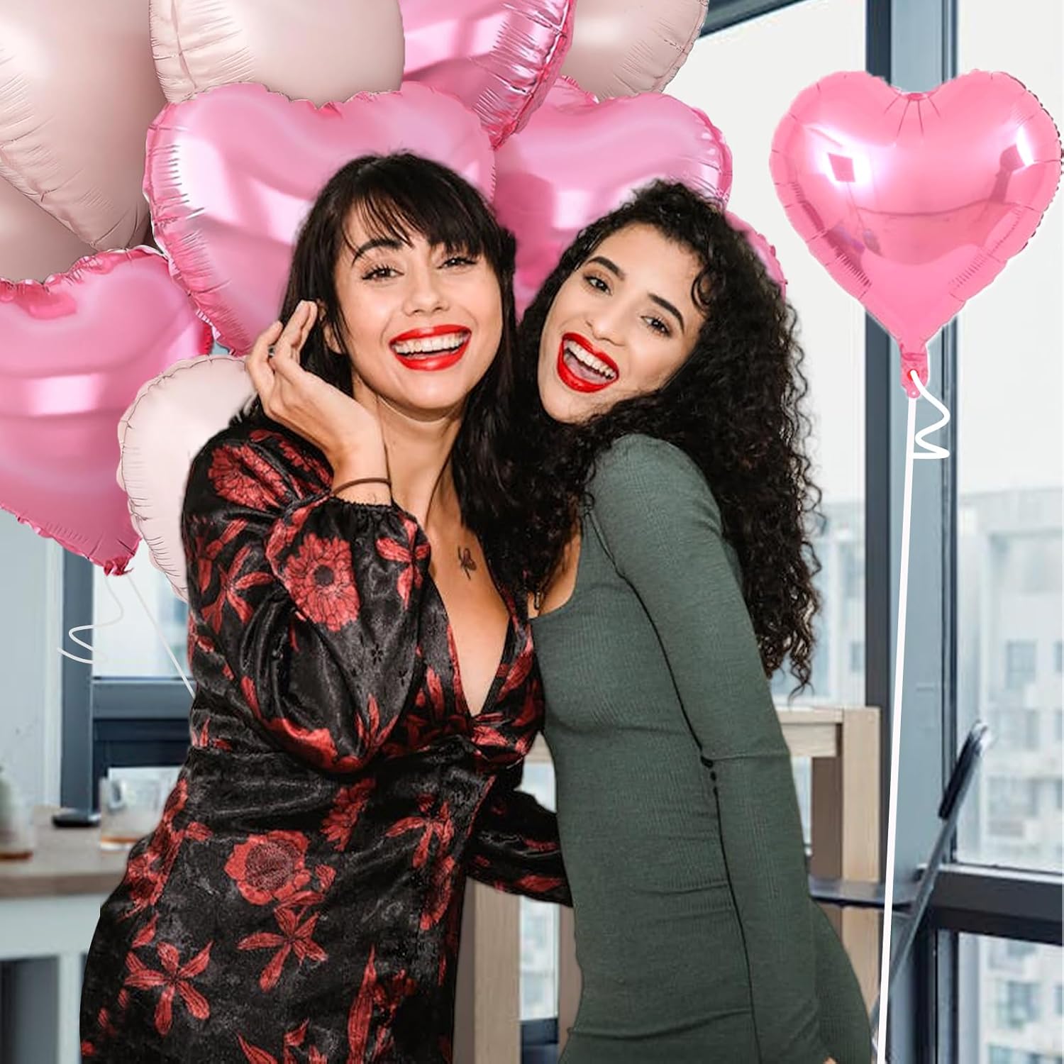 Pink Heart Balloons,18inch Bright Pink Heart Shaped Foil Balloons & Baby Pink Helium Mylar Balloon for Anniversary Wedding Engagement Birthday Party Baby Shower Decorations(12Pcs)
