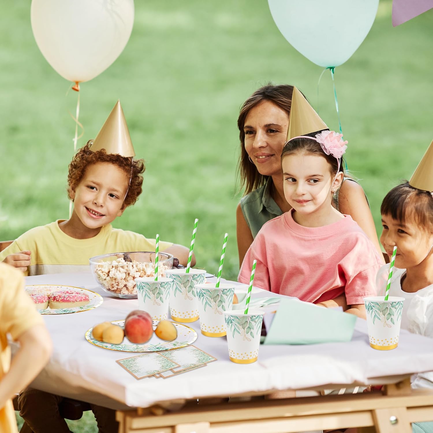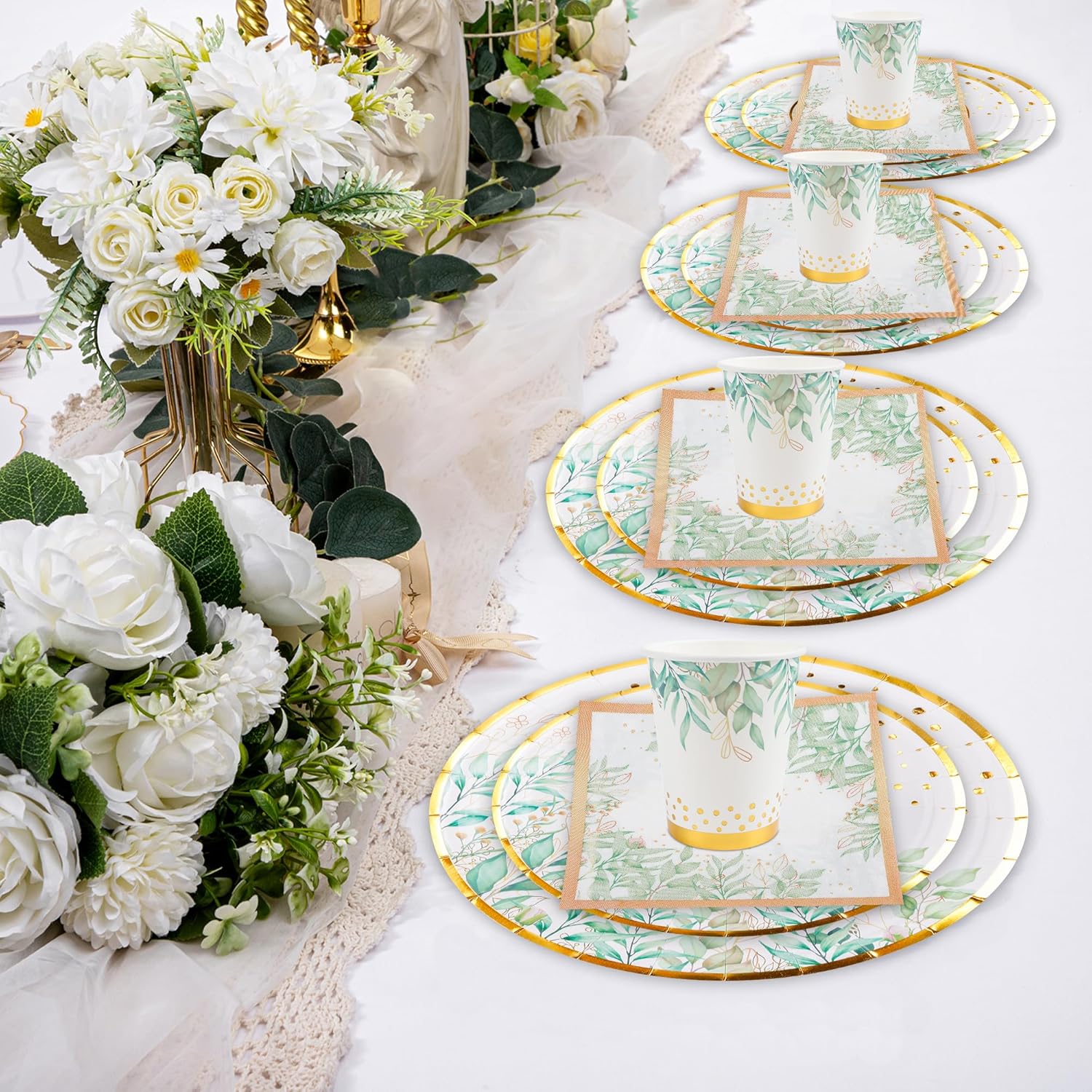 280 Pcs Greenery Plates and Napkins Party Supplies - Serves 35 People - Sage Green Gold Paper Plates Party Cups Forks Knives Spoons Straws Greenery Theme for Baby Showers, Bridal Showers, Tea Parties