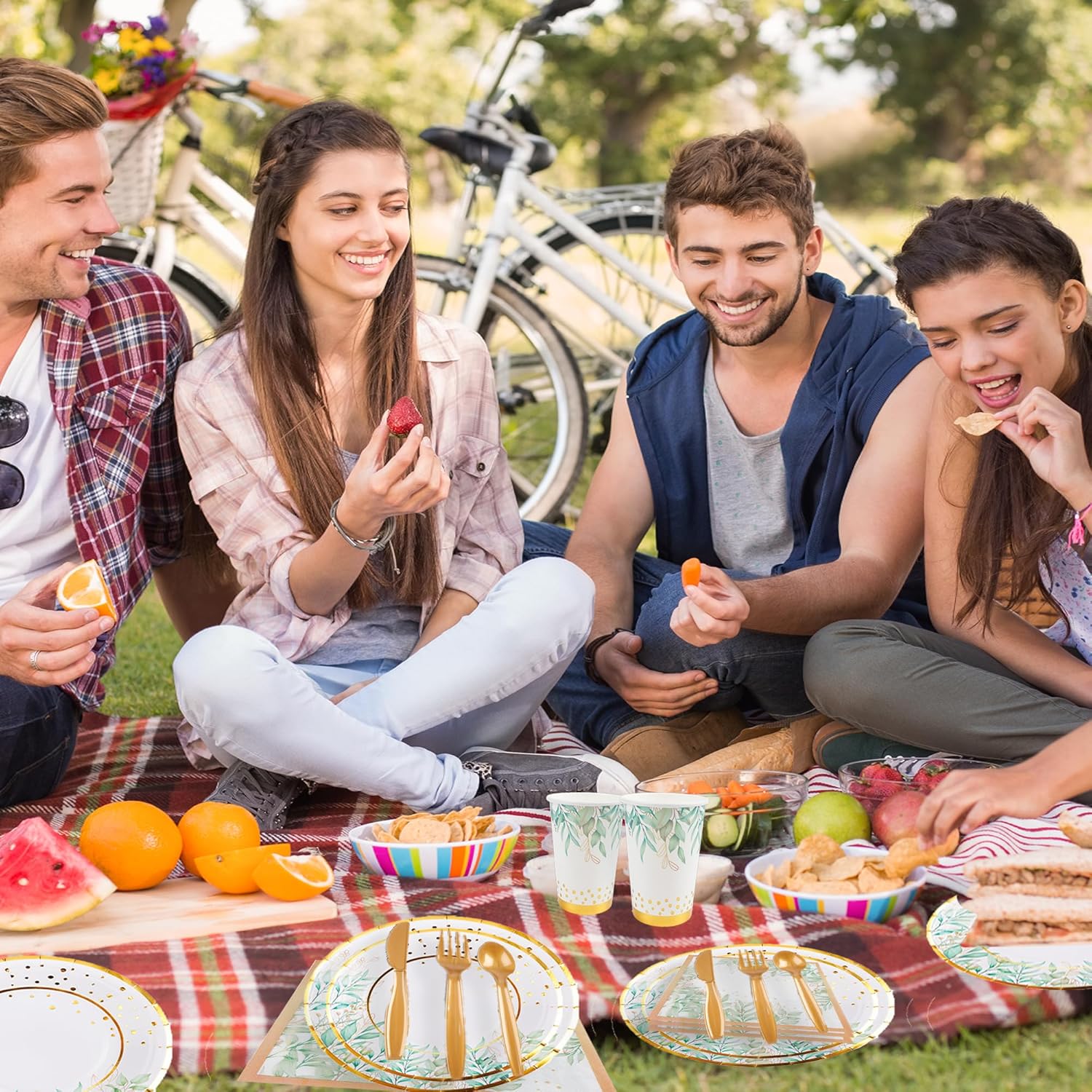 - Elegant Design: Beautiful sage green leaf pattern with metallic gold decoration creates an exquisite and charming table setting, which is your best choice