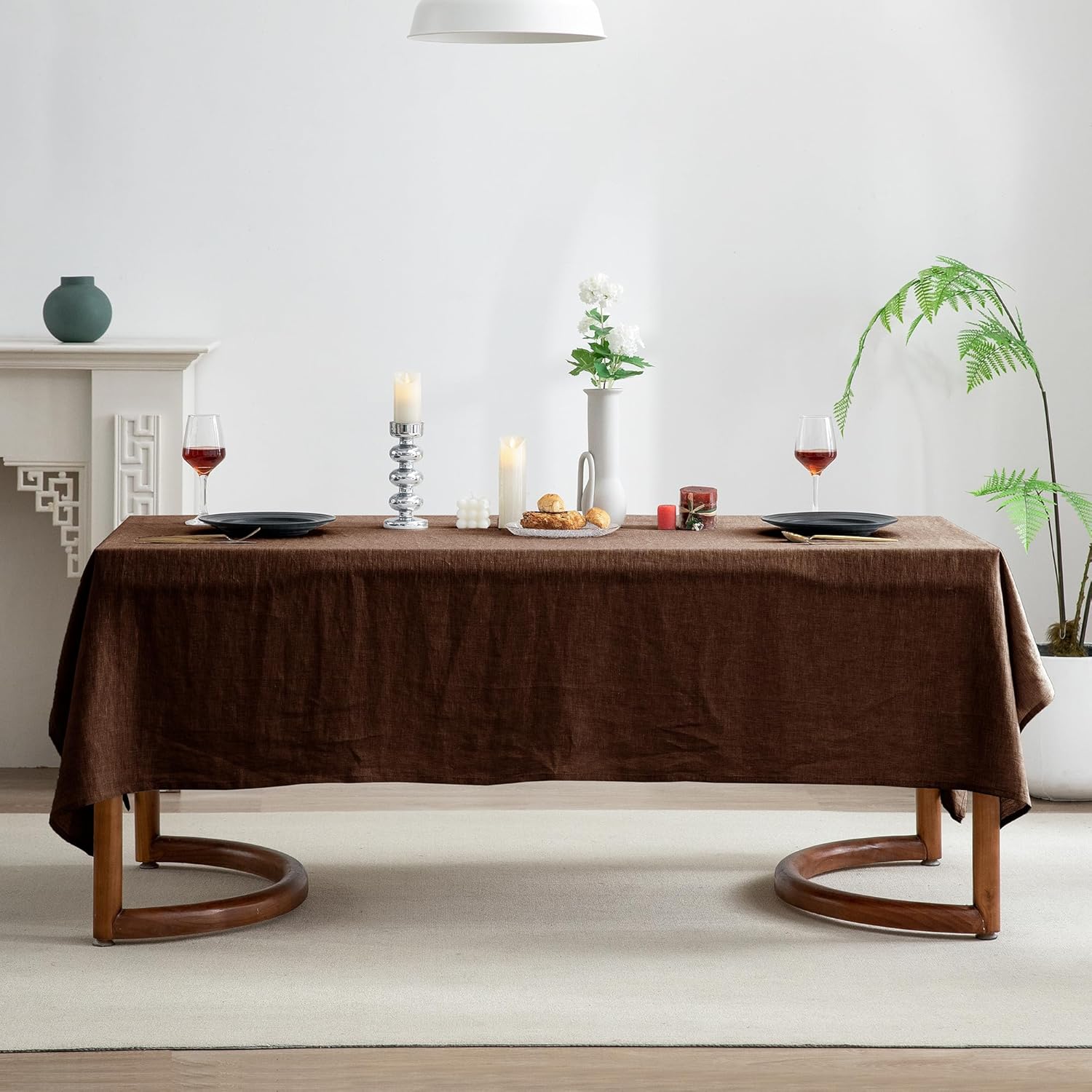 EVERLY 100% Pure Linen Rectangle Tablecloths 60x84Inches for Dining,Buffet Parties,Picnic,Events,Weddings and Restaurants,Decorative Halloween,Thanksgiving Machine Washable Tablecloths-Chocolate
