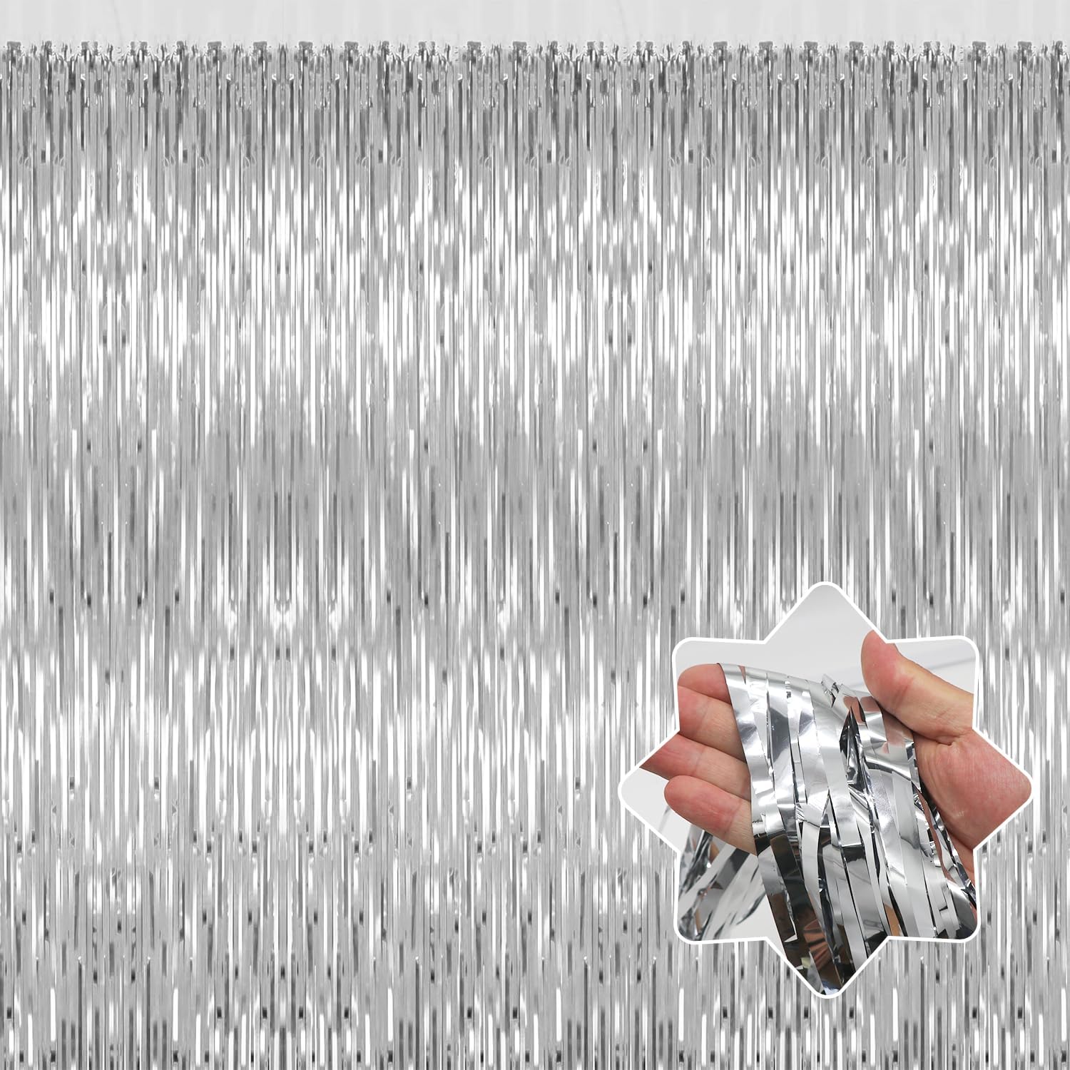 - Material & Reusable :Make your silver party curtain stand out as a silver tinsel backdrop. This silver party streamers will help to add a sparkle to silver party decorations. This silver streamer backdrop is made from grade 'A' quality material, durable and won't easily strip down. You can use silver streamers as disco backdrop, graduation decorations class of 2025, and bachelorette party backdrop. Create 2025 graduation decorations with our silver party backdrop or silver tassel backdrop.