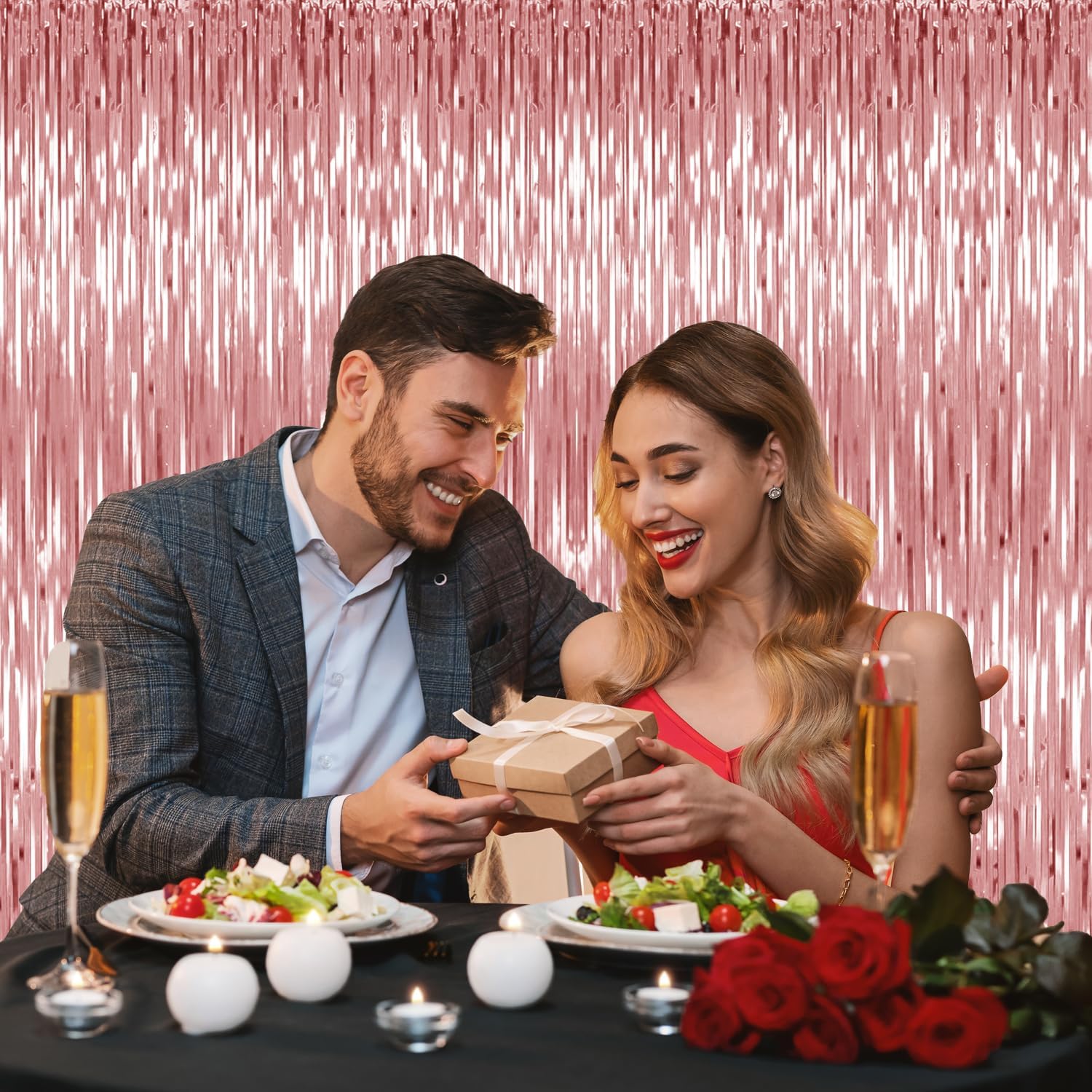 - Rose Gold Birthday Backdrop:5 packs of foil fringe curtains, the size of the foil curtain is 3.28 ft x 6.56 ft.It's long enough to fit any occasion. Please do not stick the foil curtain on uneven or stained walls to prevent it from falling off.