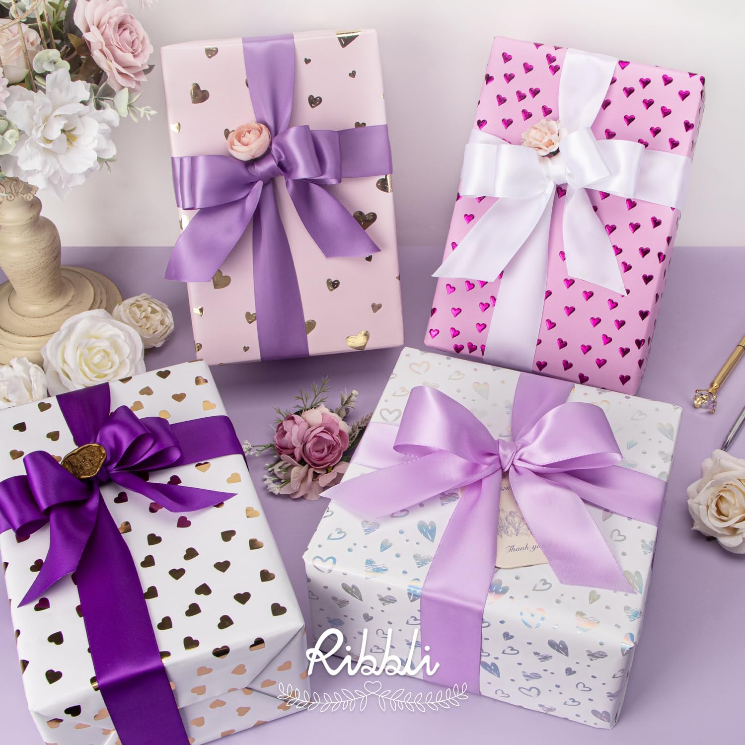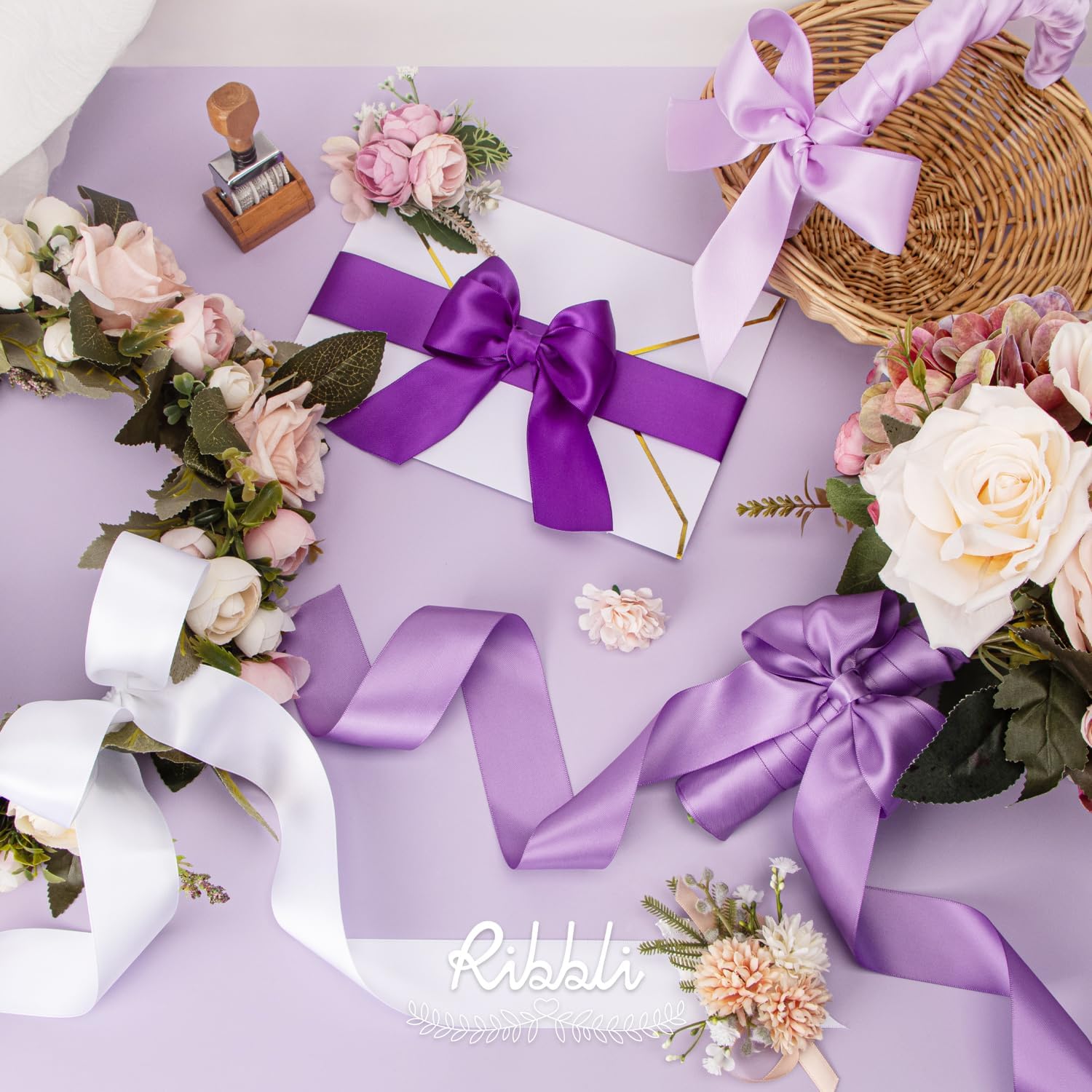 Ribbli Purple Satin Ribbon 1-1/2 Inch x 4 Rolls Total 40 Yards-White Lavender Purple Ribbon for Gift Wrapping Craft Wedding Decoration