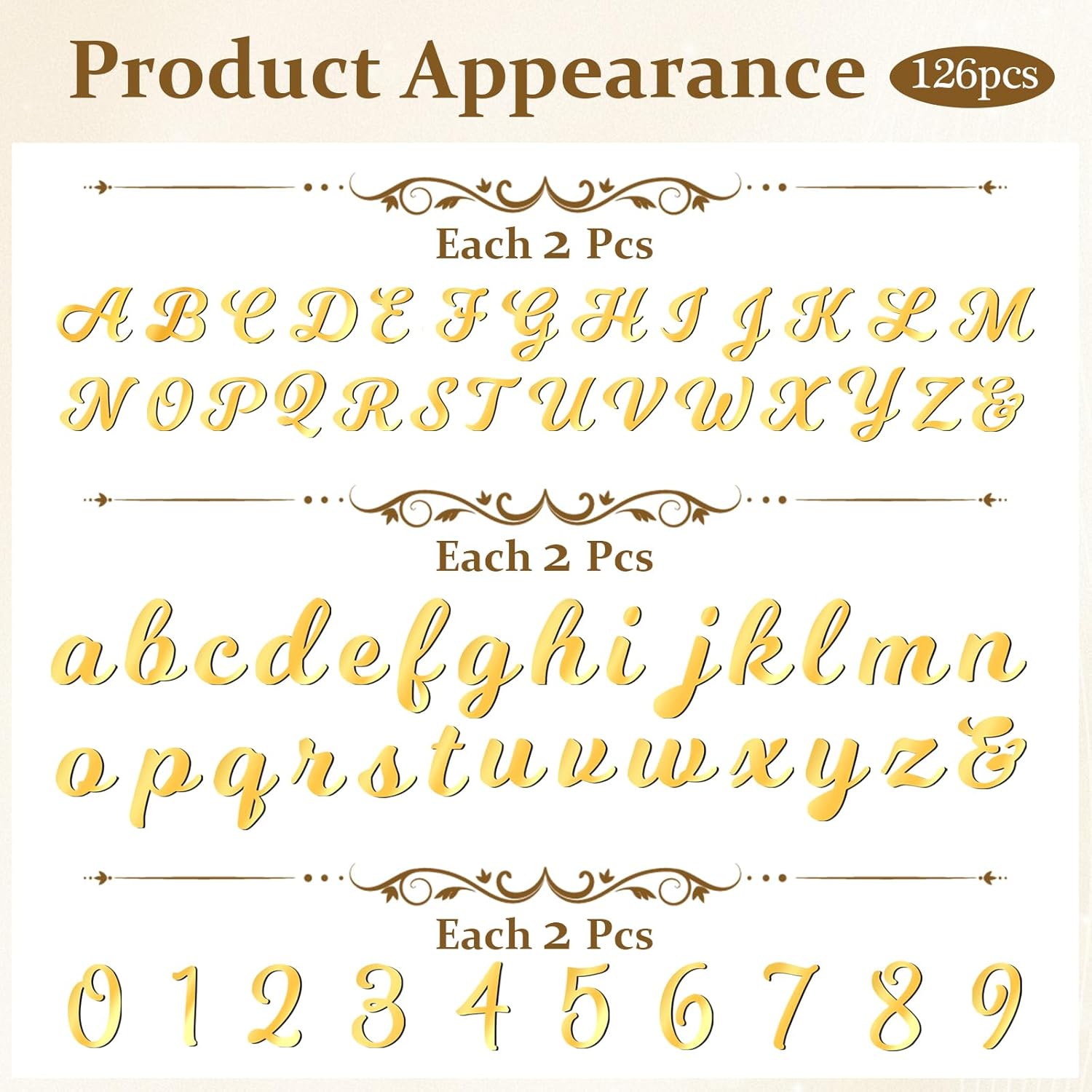 126 PCS Custom Name Cake Topper Acrylic Letters DIY Personalized A-Z & 0-9 Number Alphabet Cake Decoration For Wedding Anniversary Baby Shower Party Birthday Supplies(Gold)