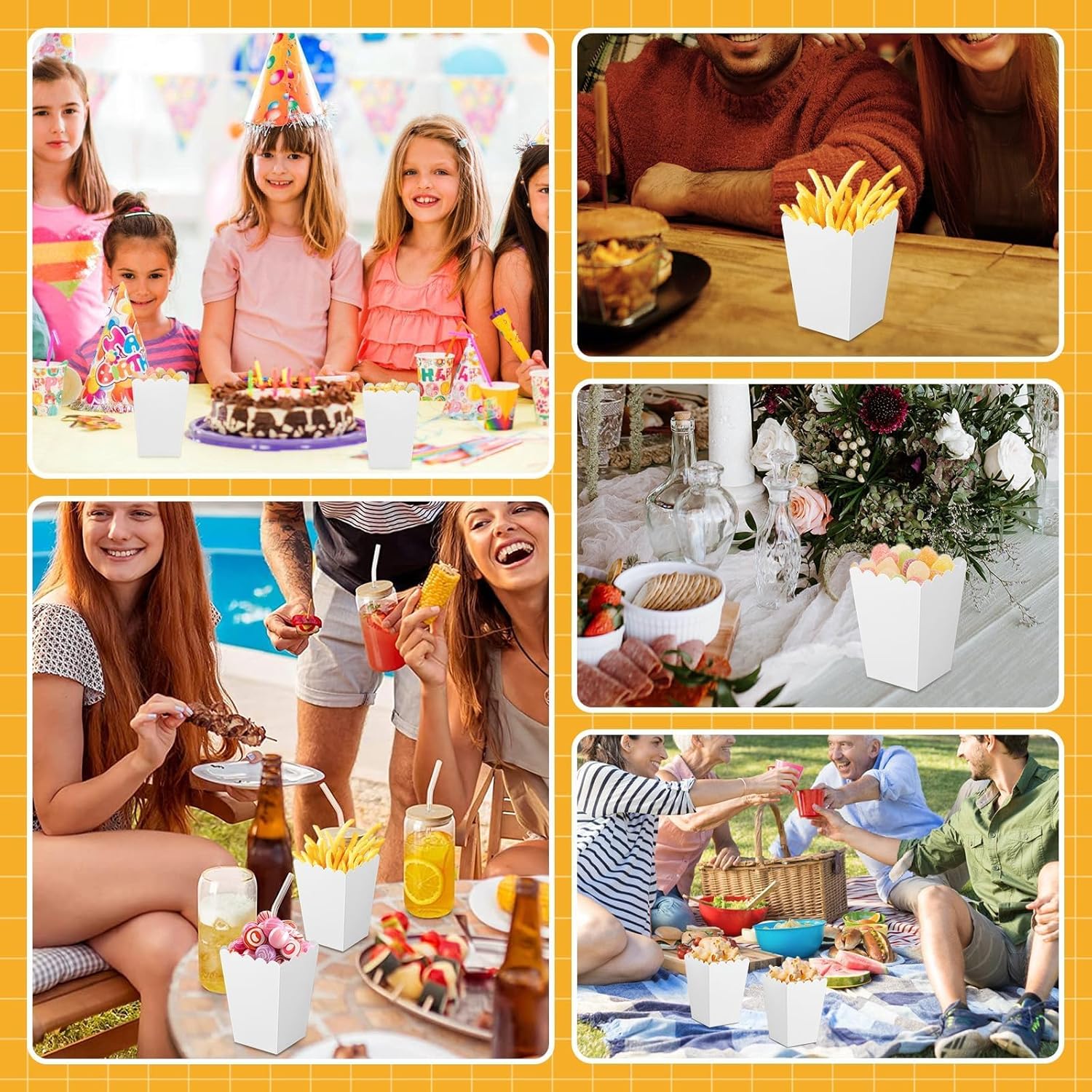 - Versatile Party & Event Essential: Not just for popcorn! Use these snack boxes for candies, chips, fries, nuts, or even small party favors. These small popcorn containers bulk are ideal for party setups, wedding, and theater events.