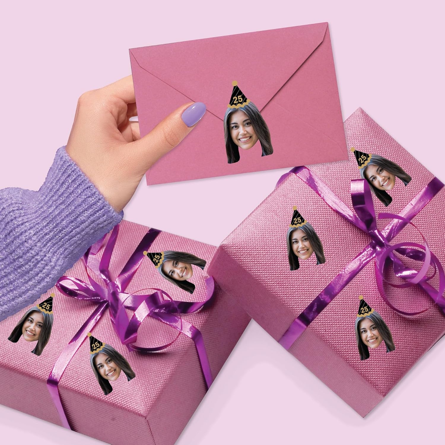 - Fun Face Cut-Out Stickers includes 24 paper die cut stickers using ONE custom photo. Great for birthday parties these shaped stickers are a fun party accessory that will brighten the mood.
